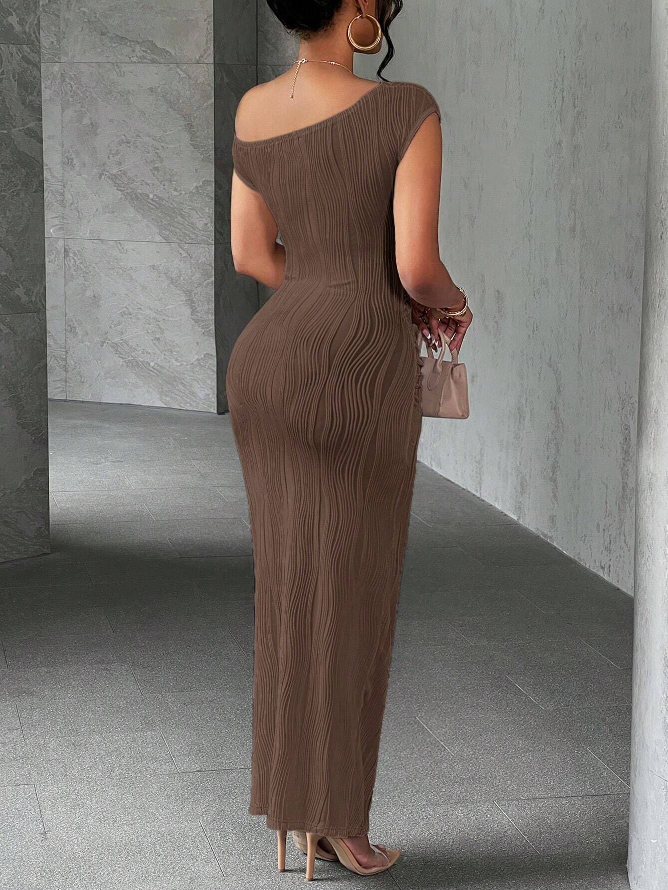 Asymmetrical One Shoulder Bodycon Maxi Dress