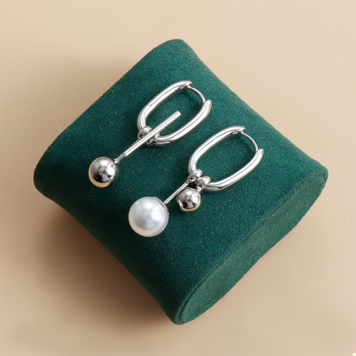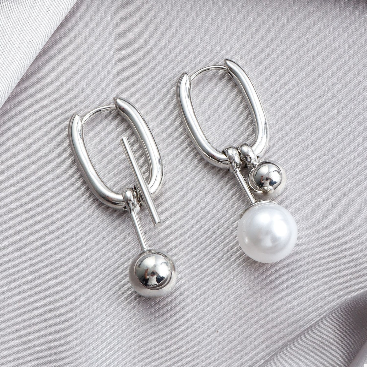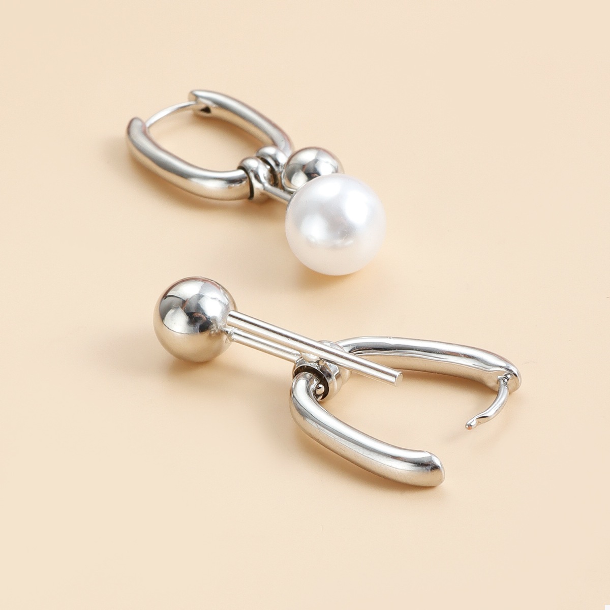 Asymmetrical Pearl Drop Hoop Earrings