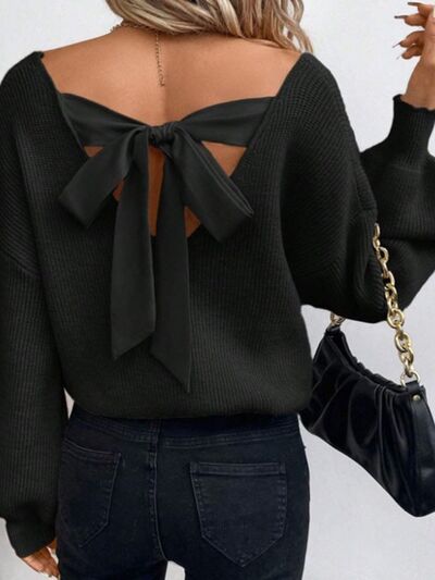 Back Bow V-Neck Sweater