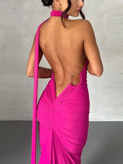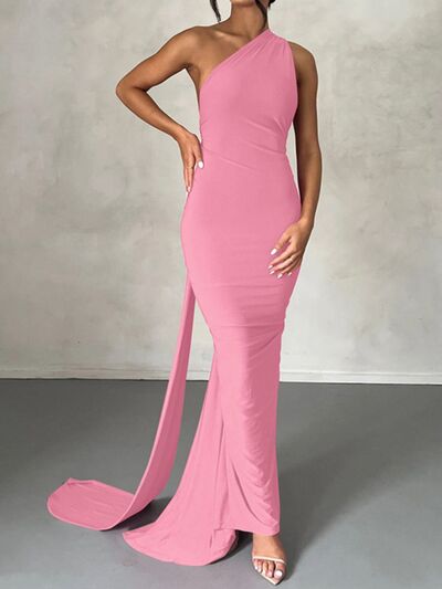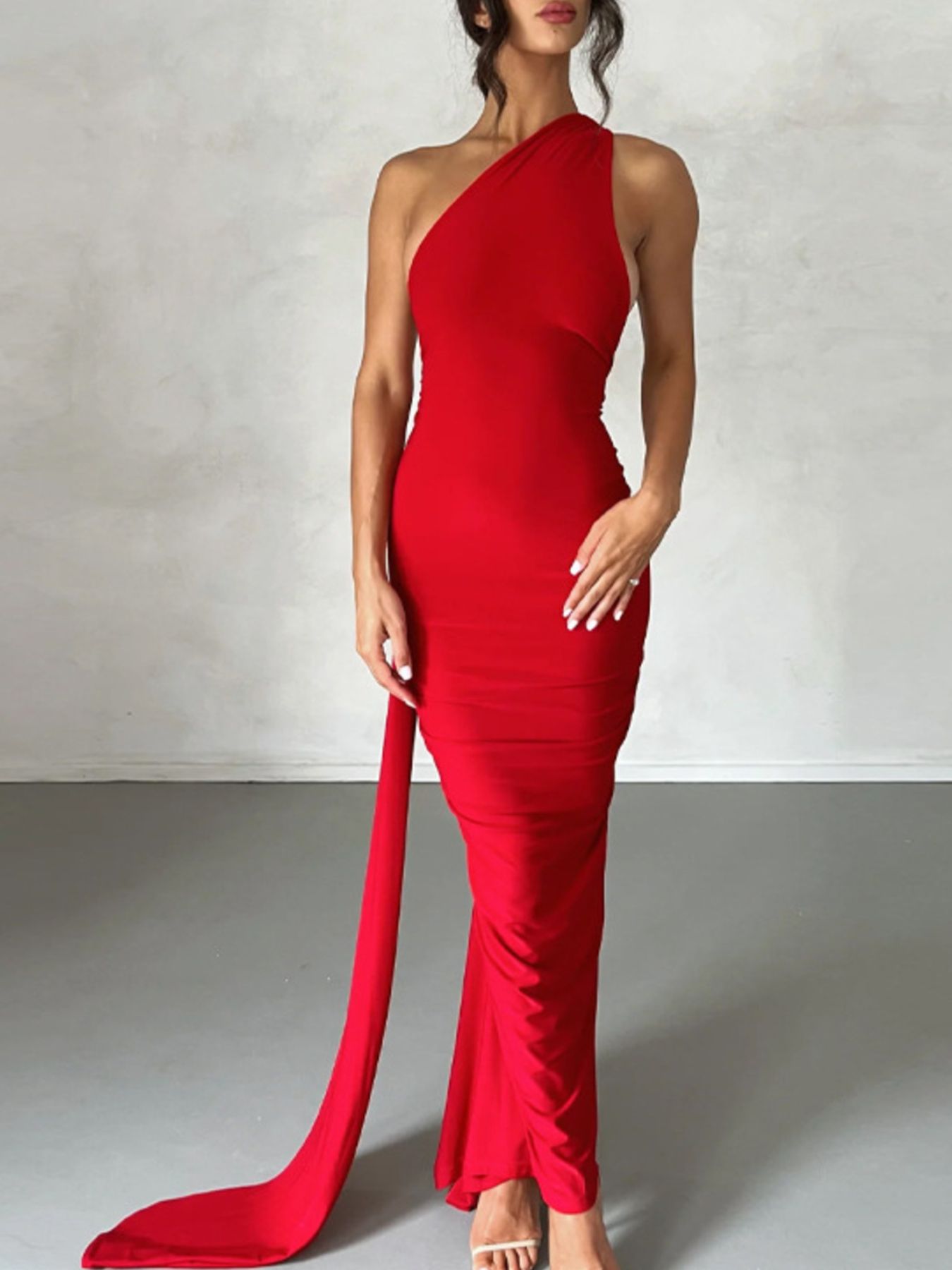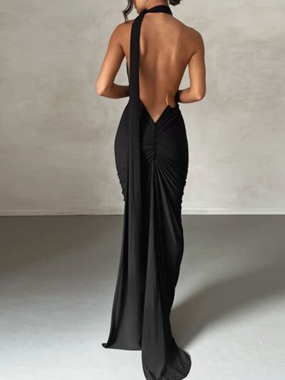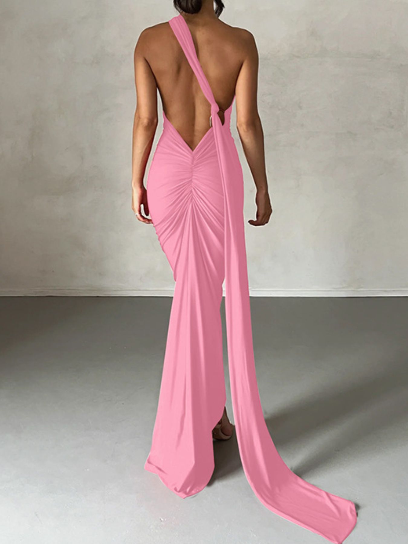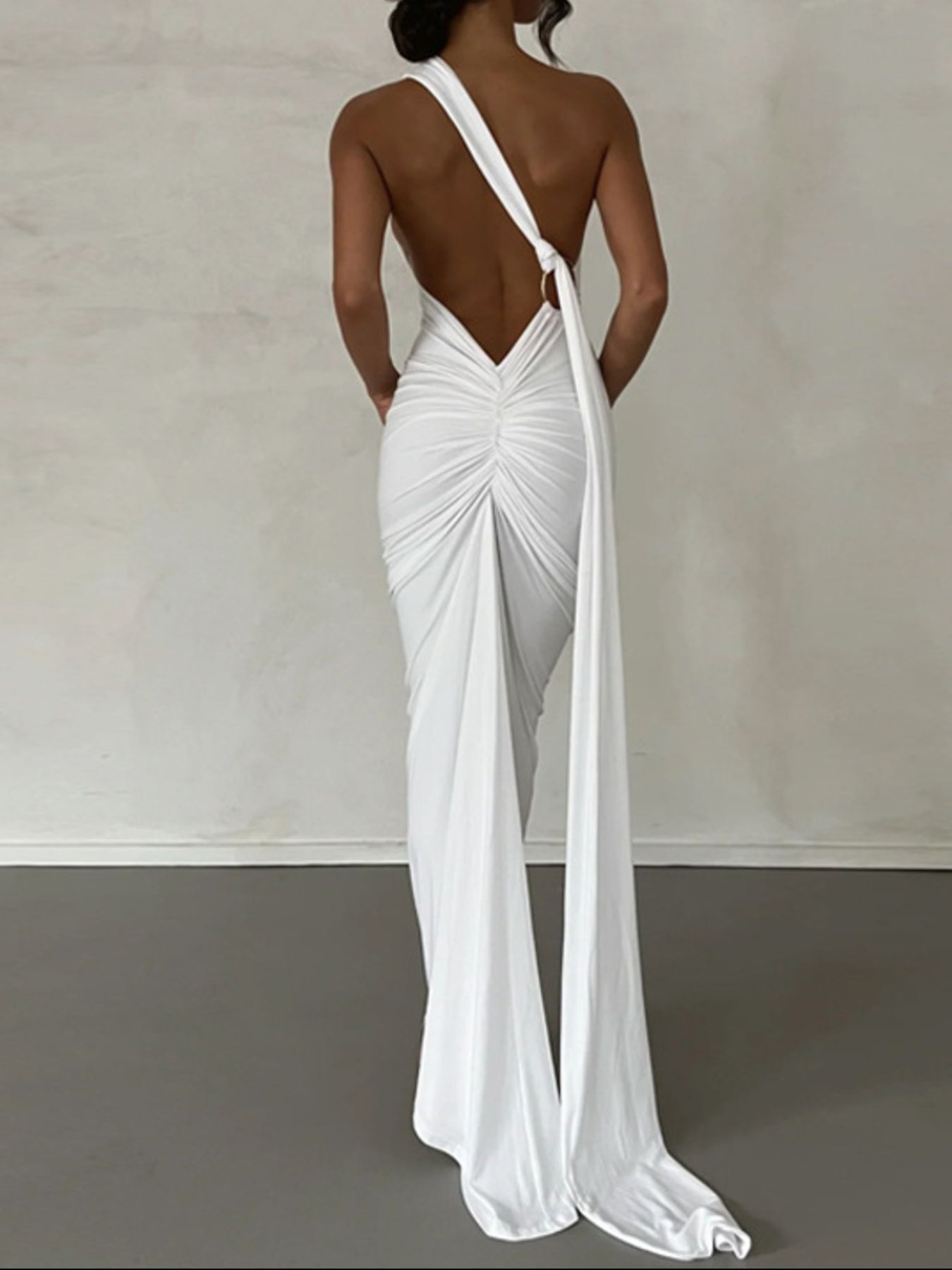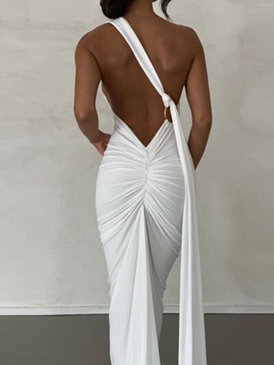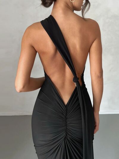 Backless One-Shoulder Ruched Bodycon Maxi Dress