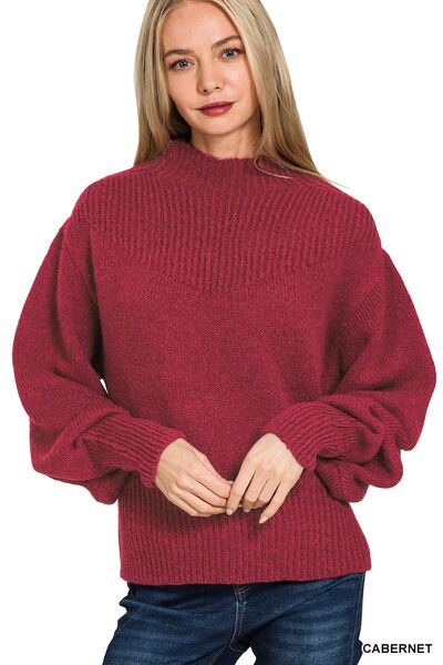 Balloon Sleeve Mock Neck Sweater