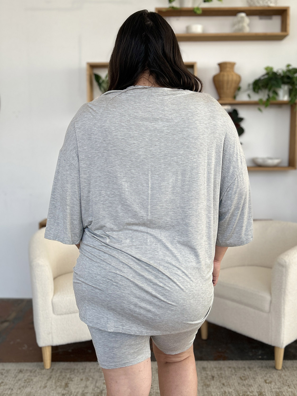 Bamboo Full Size Round Neck Drop Shoulder T-Shirt and Shorts Set