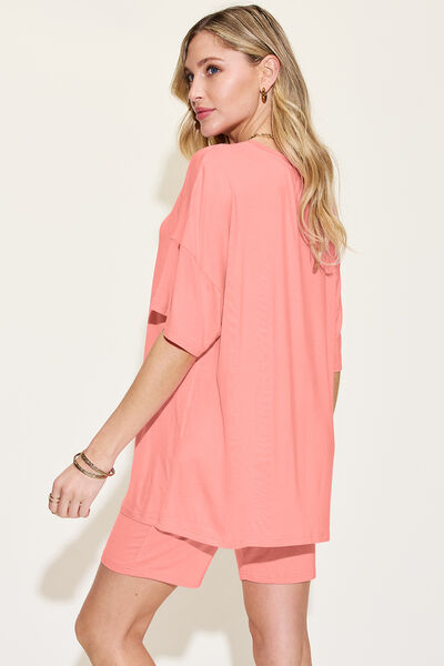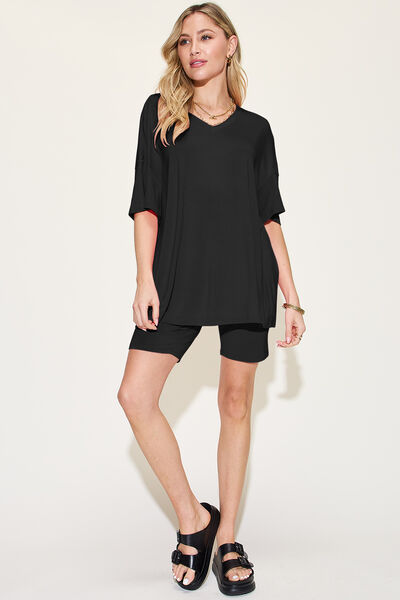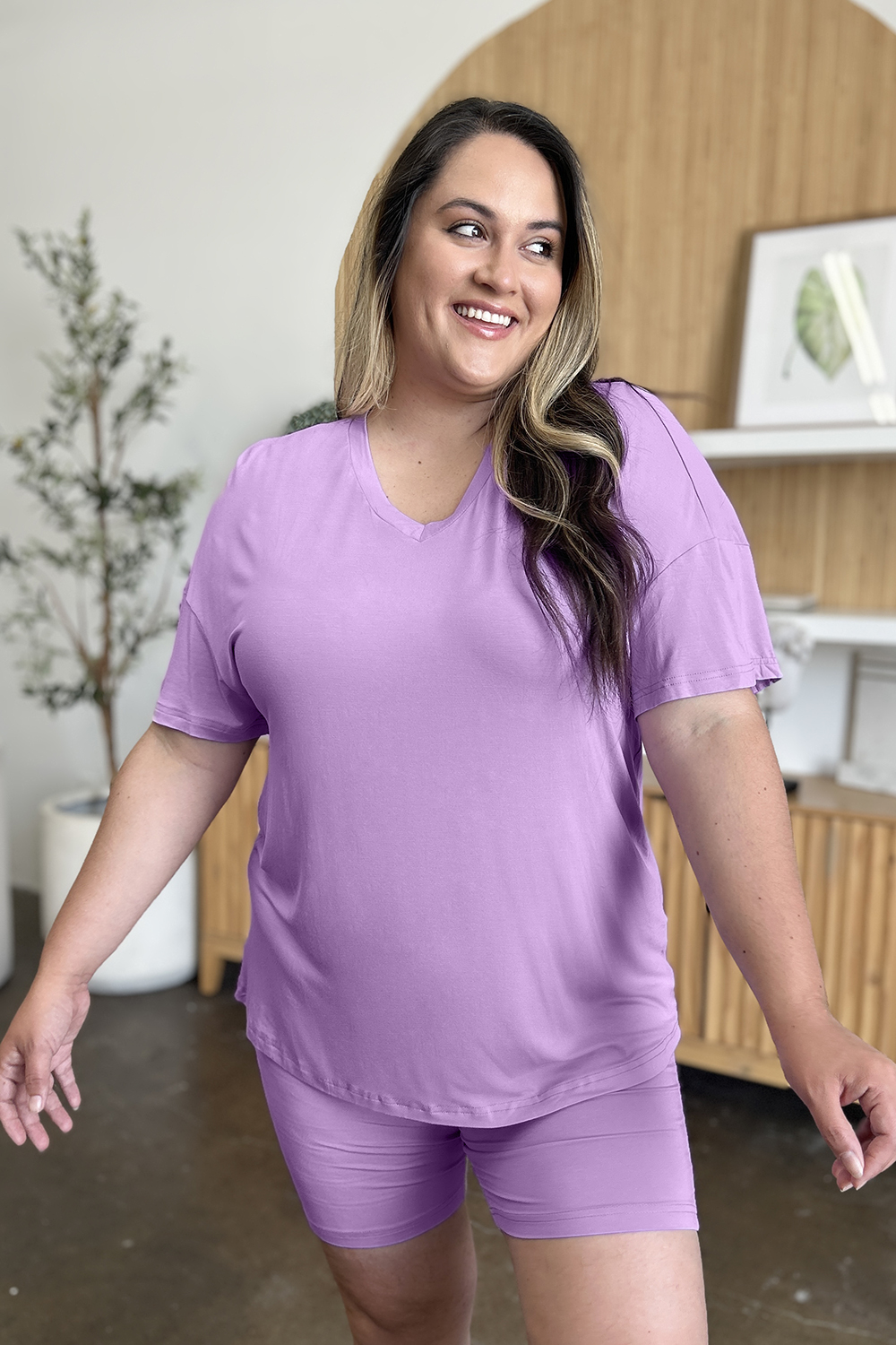 Bamboo Full Size V-Neck Drop Shoulder T-Shirt and Shorts Set