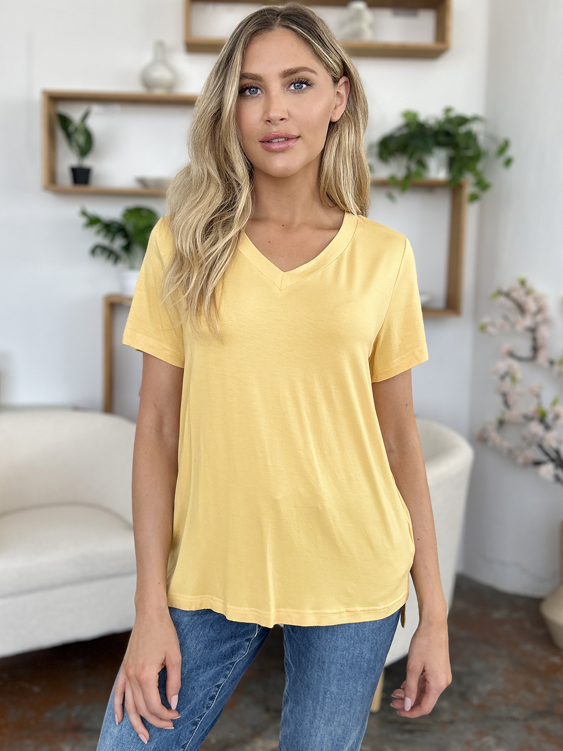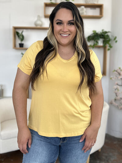 Bamboo Full Size V-Neck High-Low T-Shirt