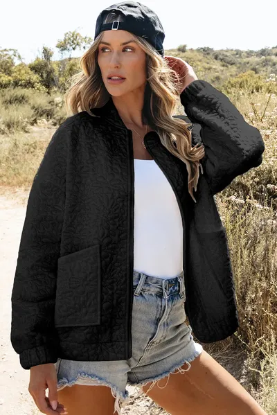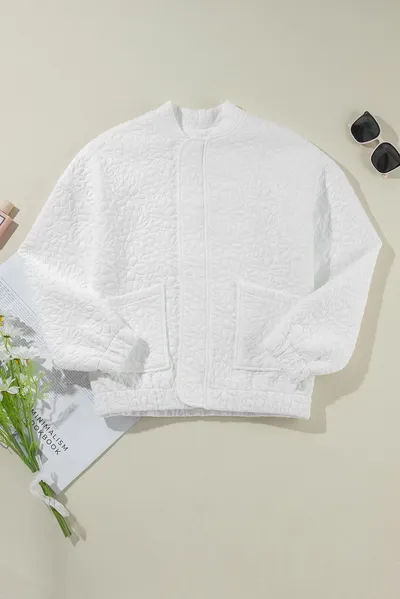 Baseball Collar Floral Quilted Jacket