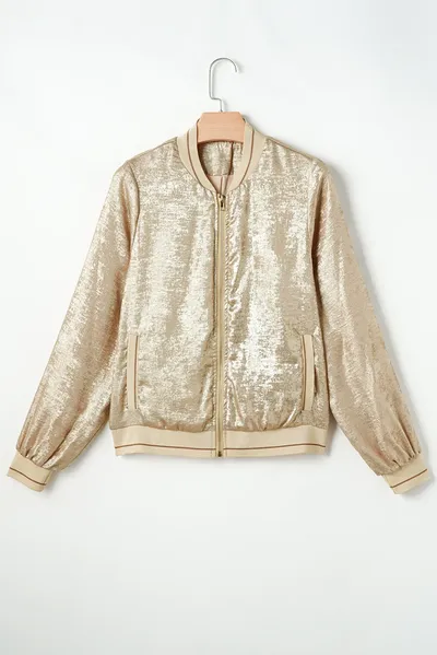 Baseball Collar Zip Up Long Sleeve Jacket