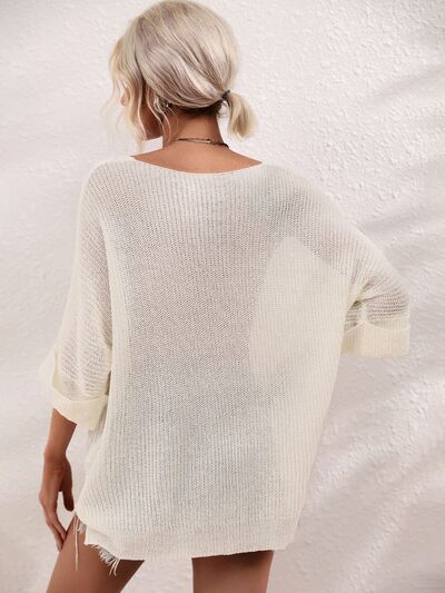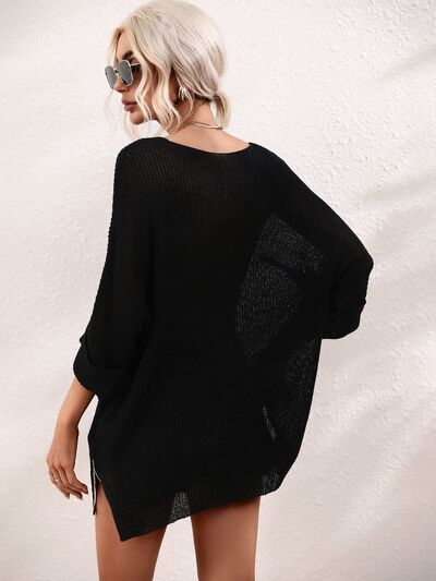 Boat Neck Cuffed Sleeve Slit Tunic Knit Top
