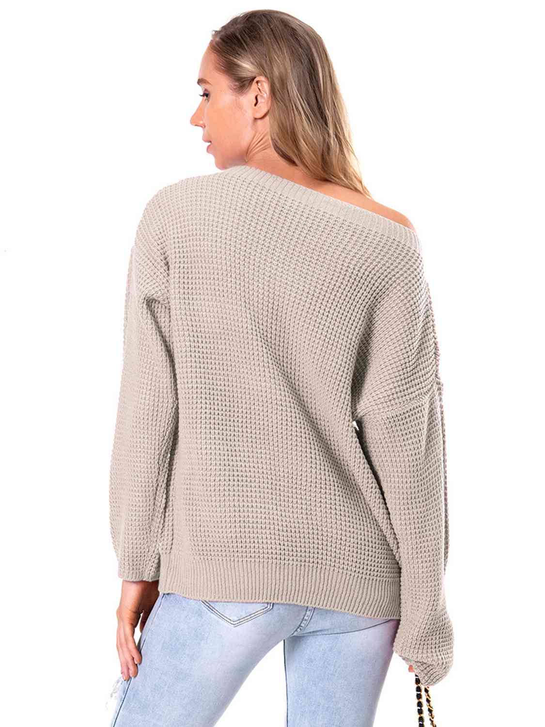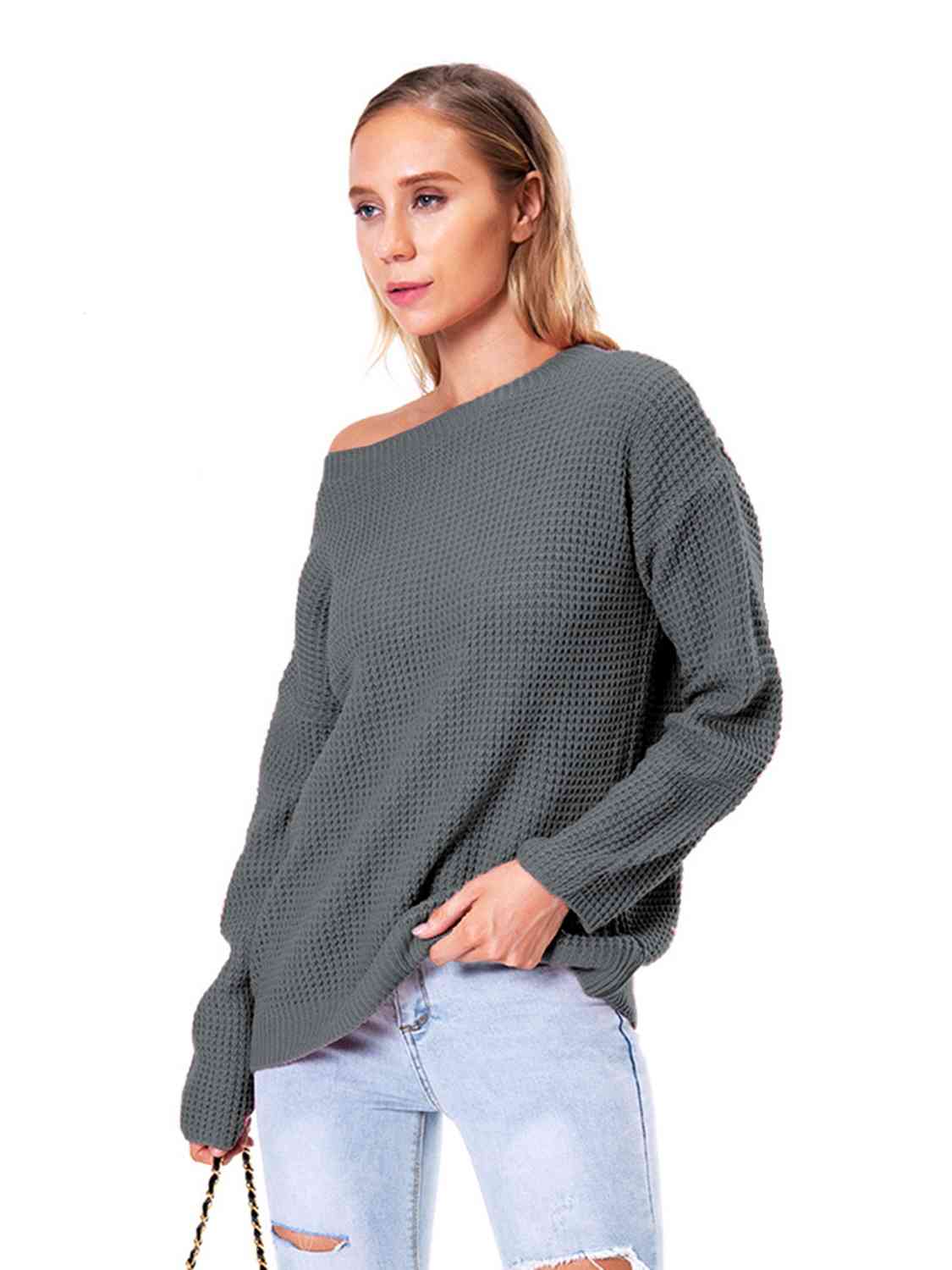 Boat Neck Drop Shoulder Long Sleeve Sweater