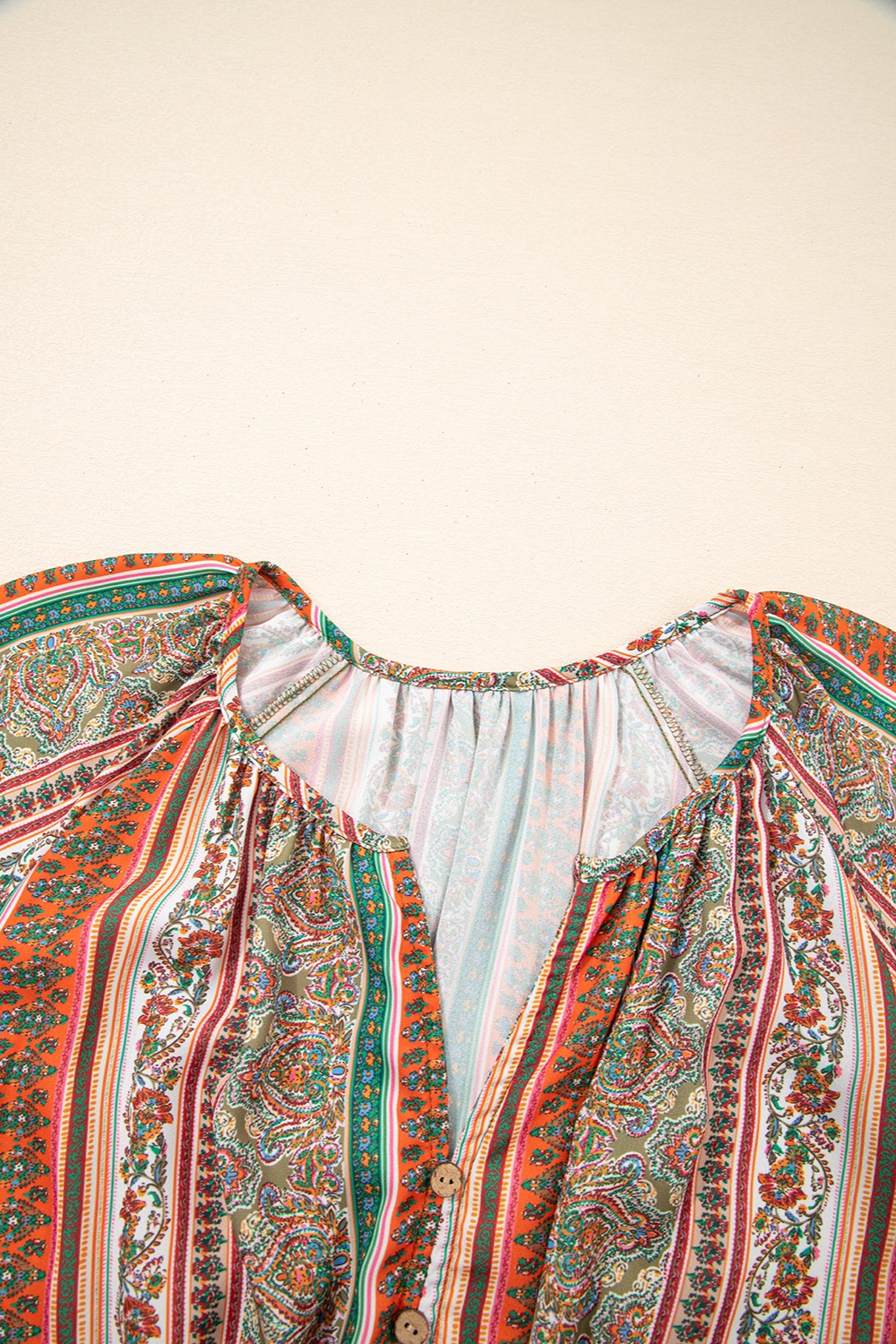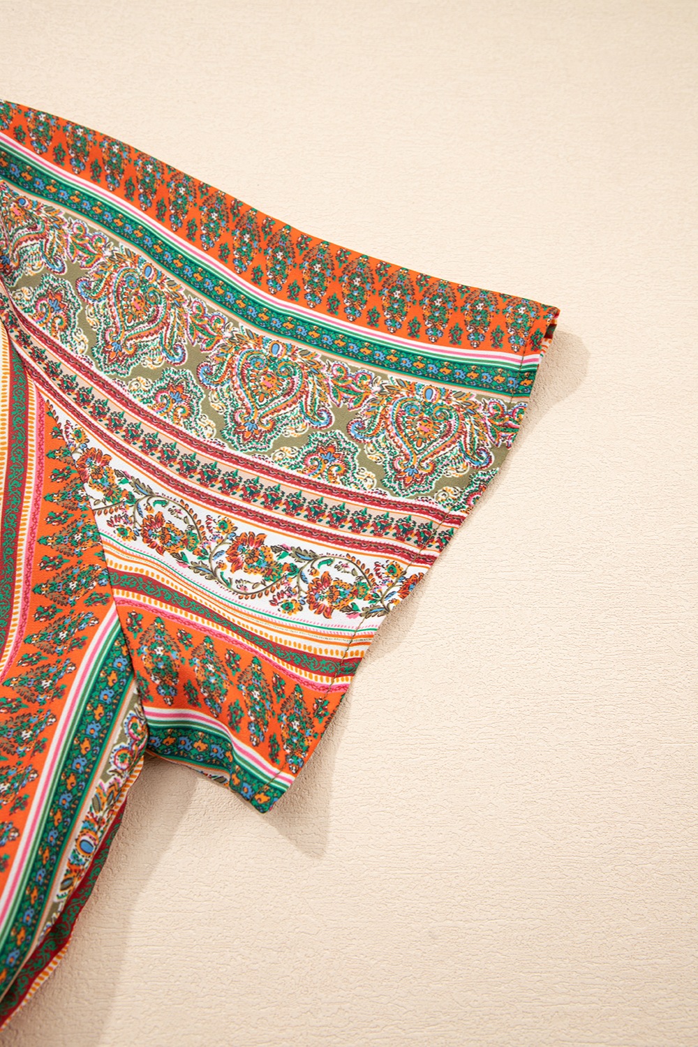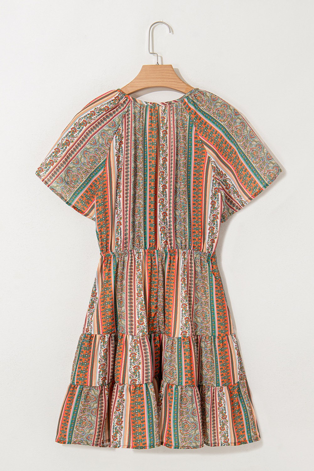 Bohemian Floral Print Buttoned V Neck Ruffle Tiered Dress