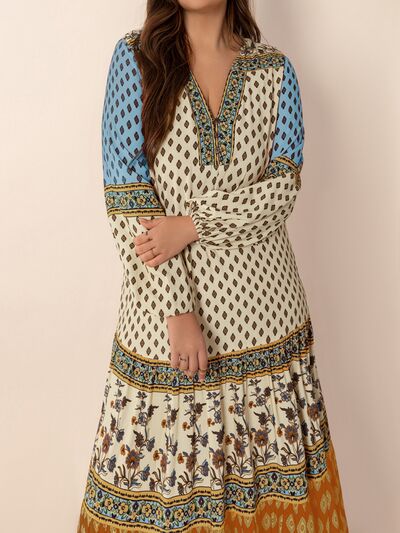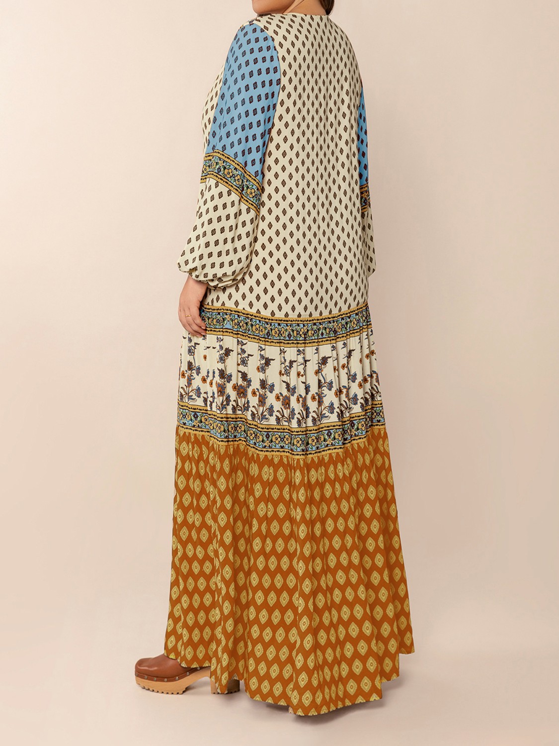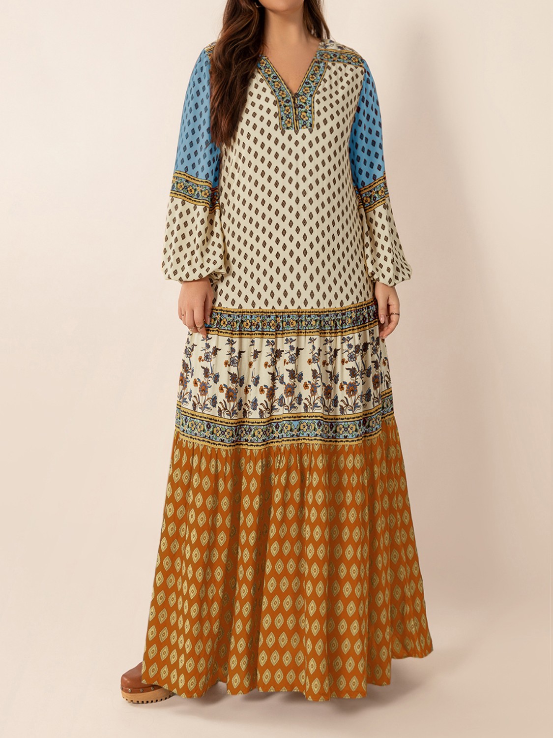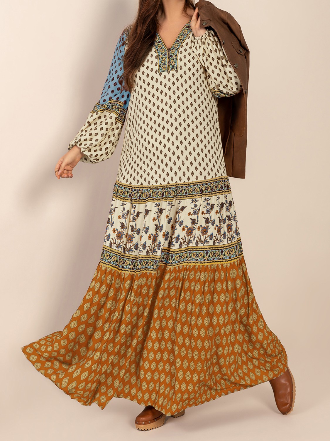 Bohemian Mixed Print Long Sleeve Maxi Dress
