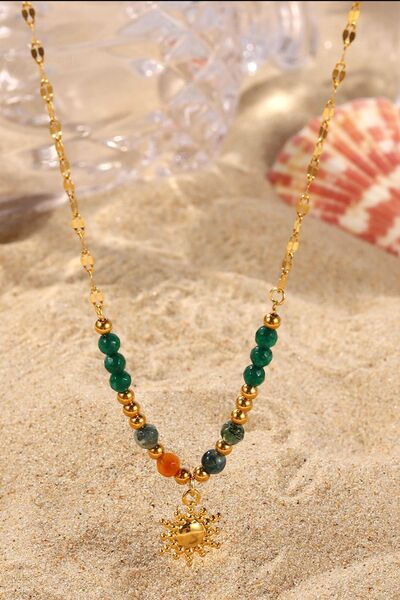 Bohemian Sun Charm Beaded Stainless Steel Necklace