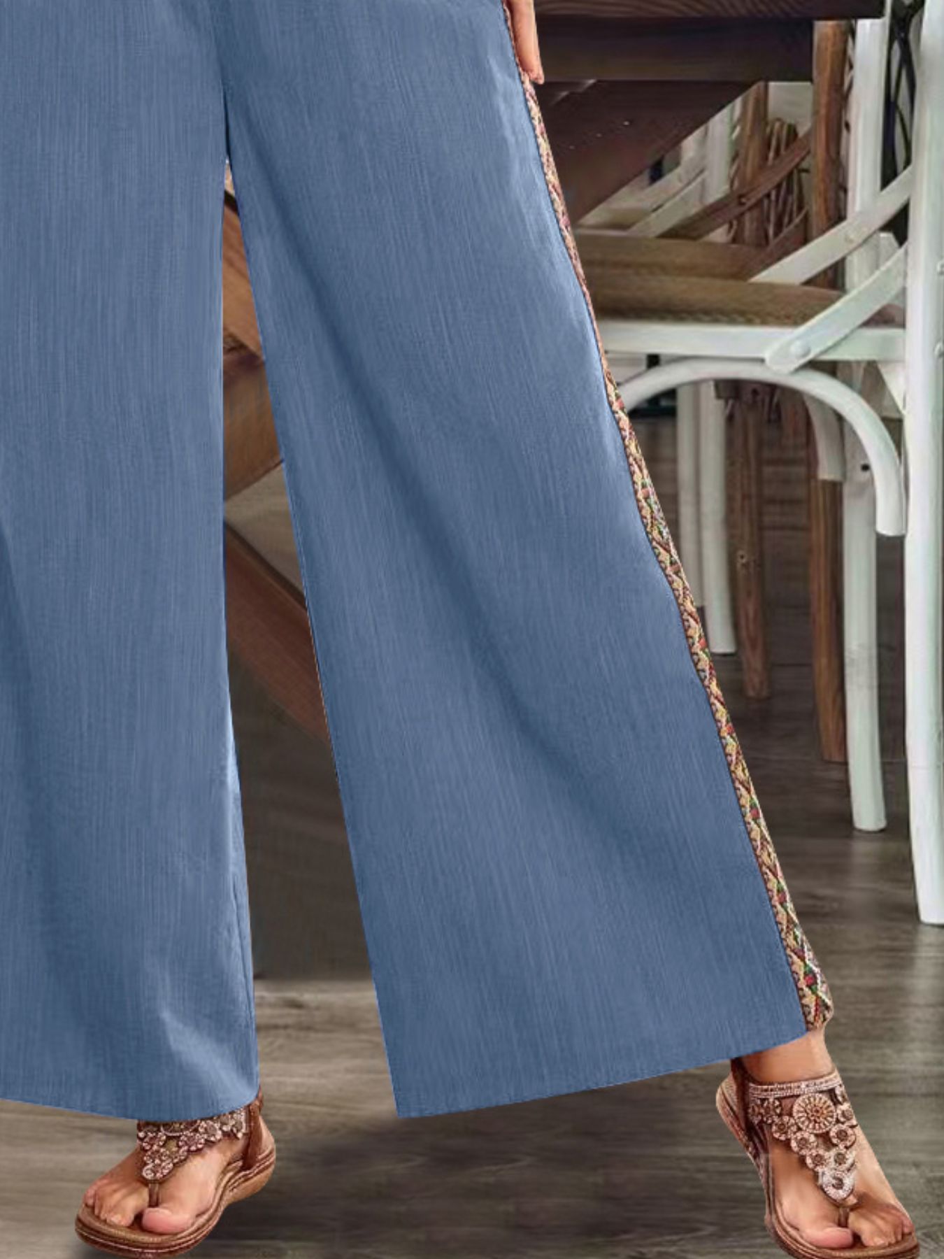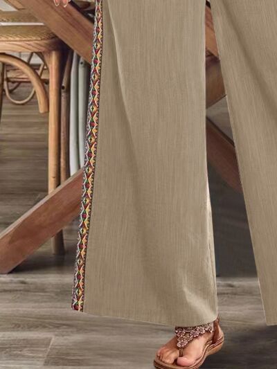 Bohemian Wide Leg Embroidered Side Stripe Pants