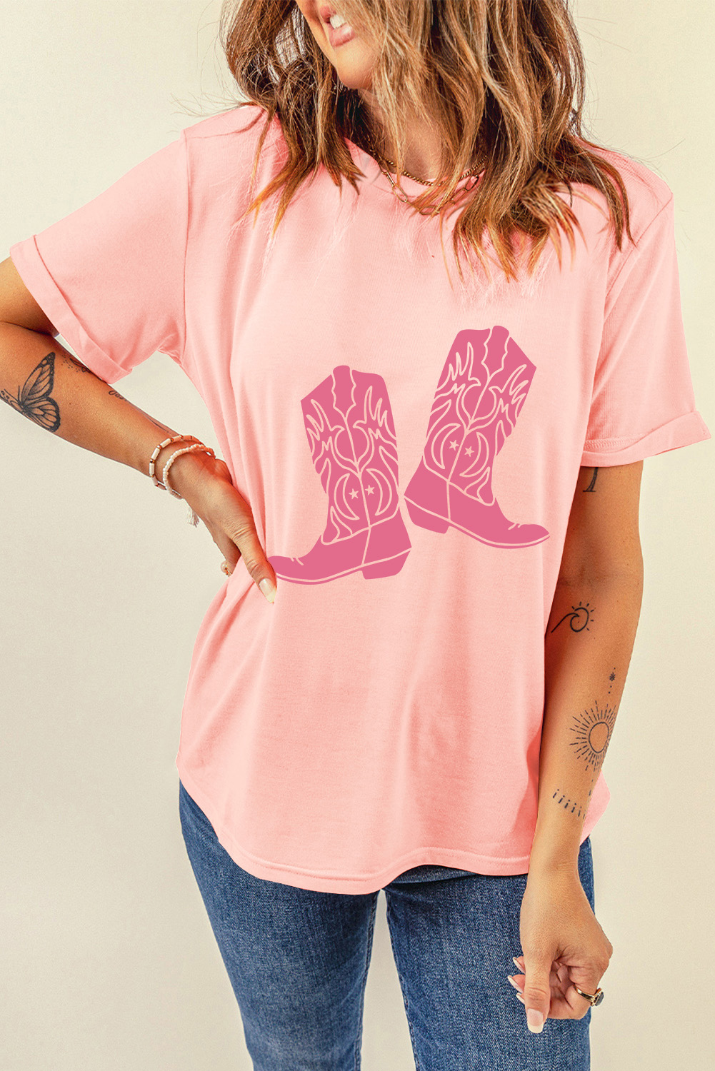 Boots Graphic Round Neck Short Sleeve T-Shirt