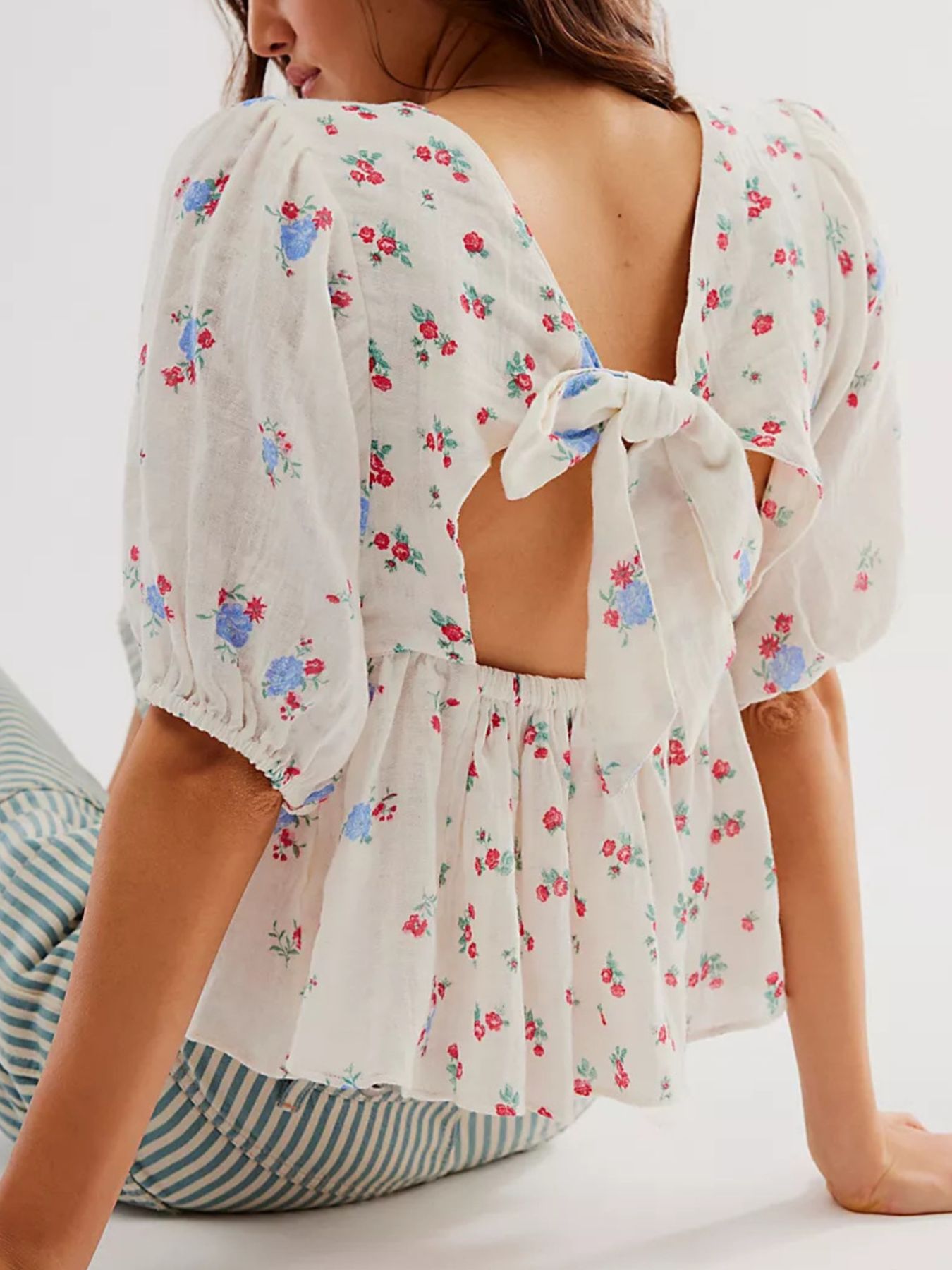 Bow Back Puff Sleeve Blouse