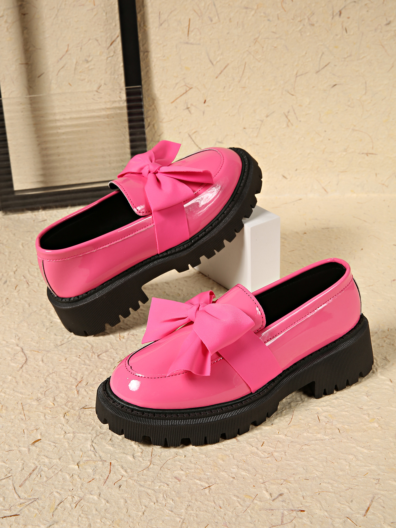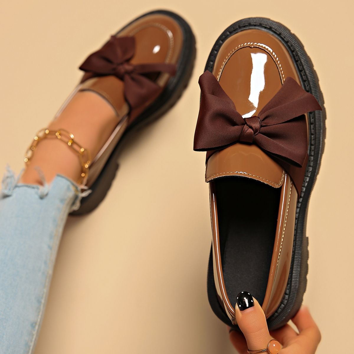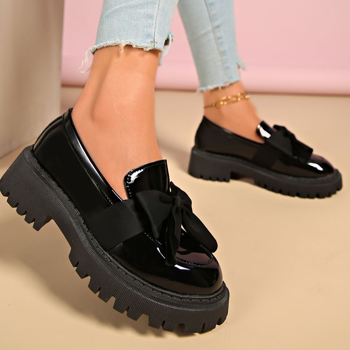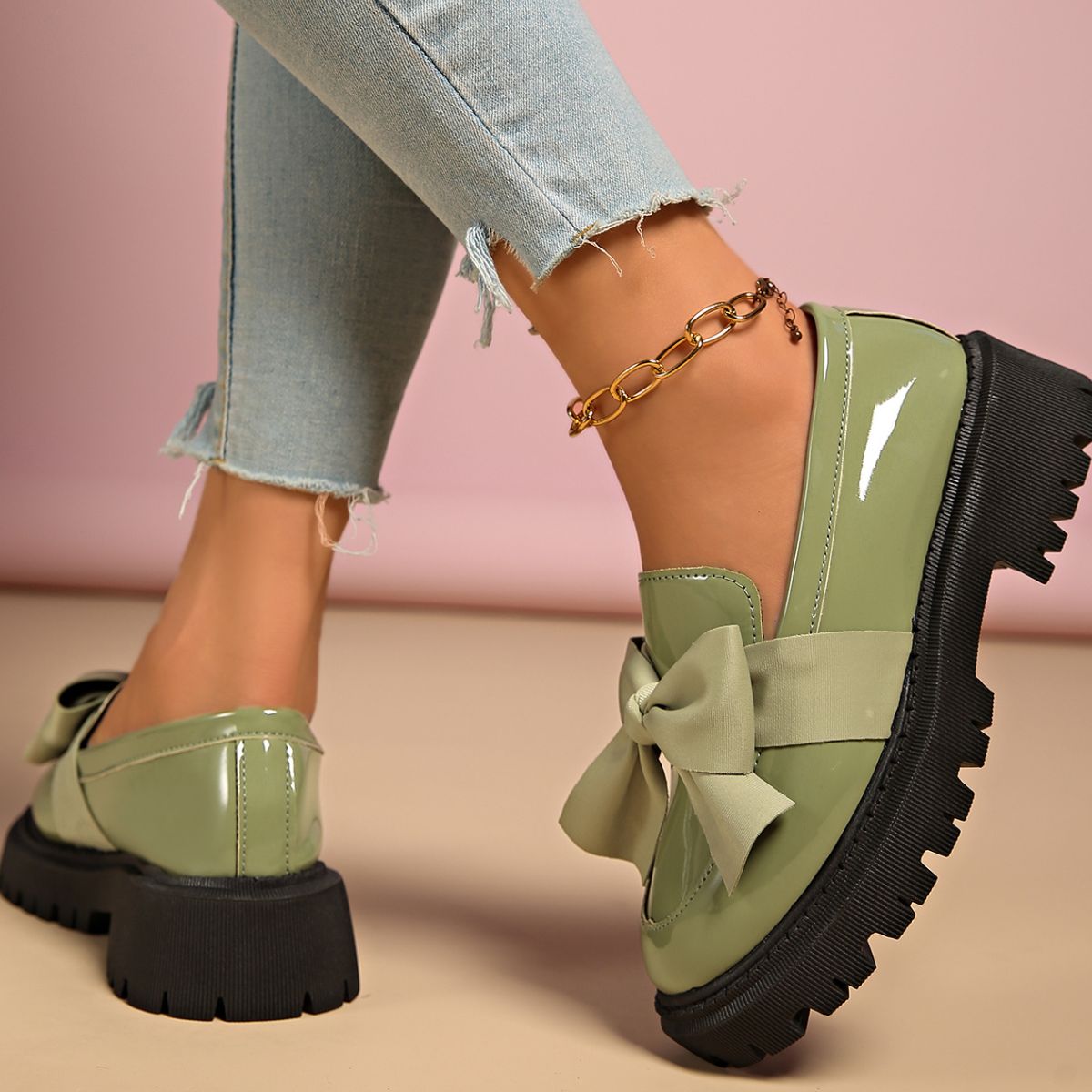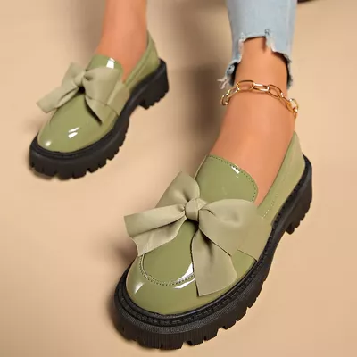 Bow Decor Round Toe Loafers