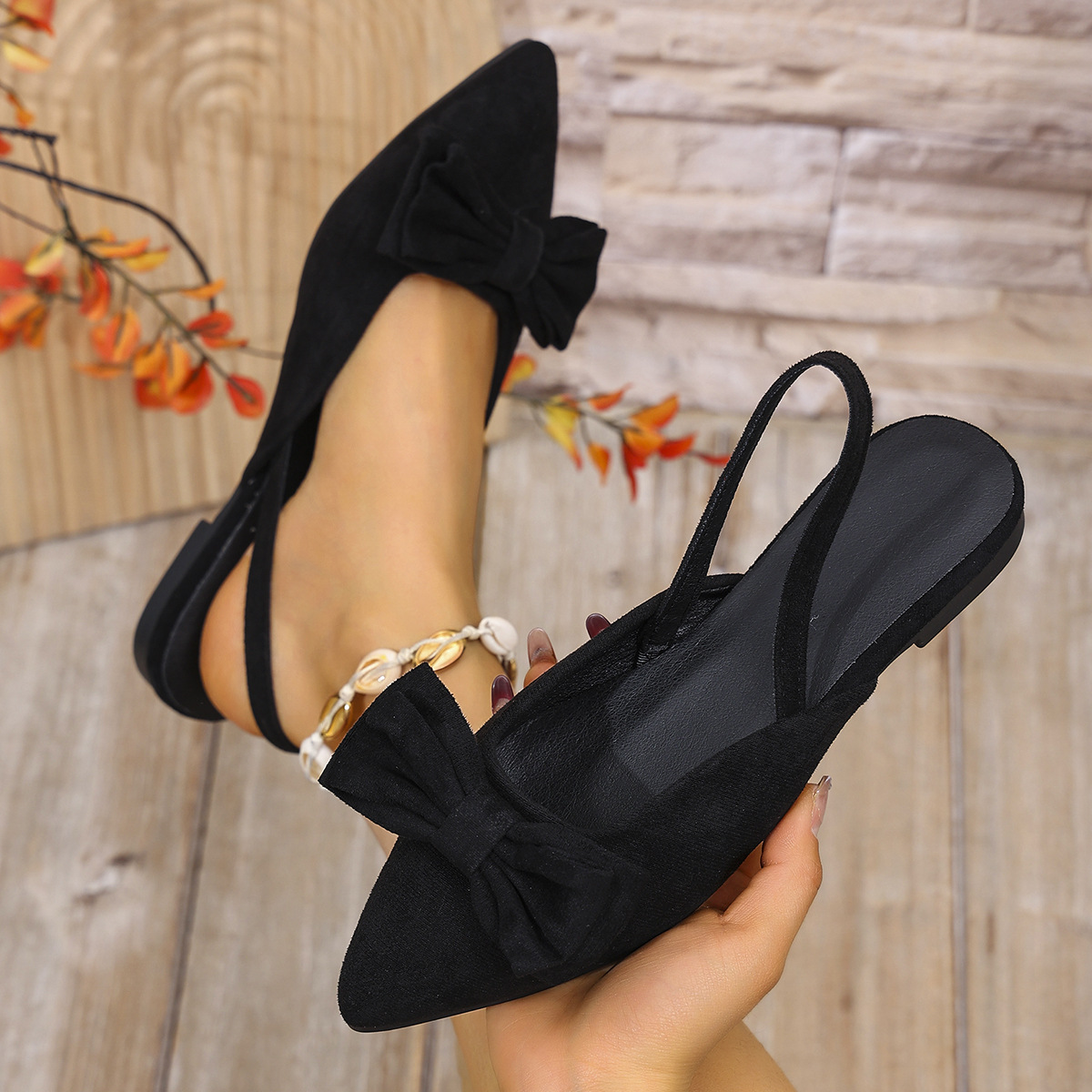 Bow Decor Slingback Slip-Ons