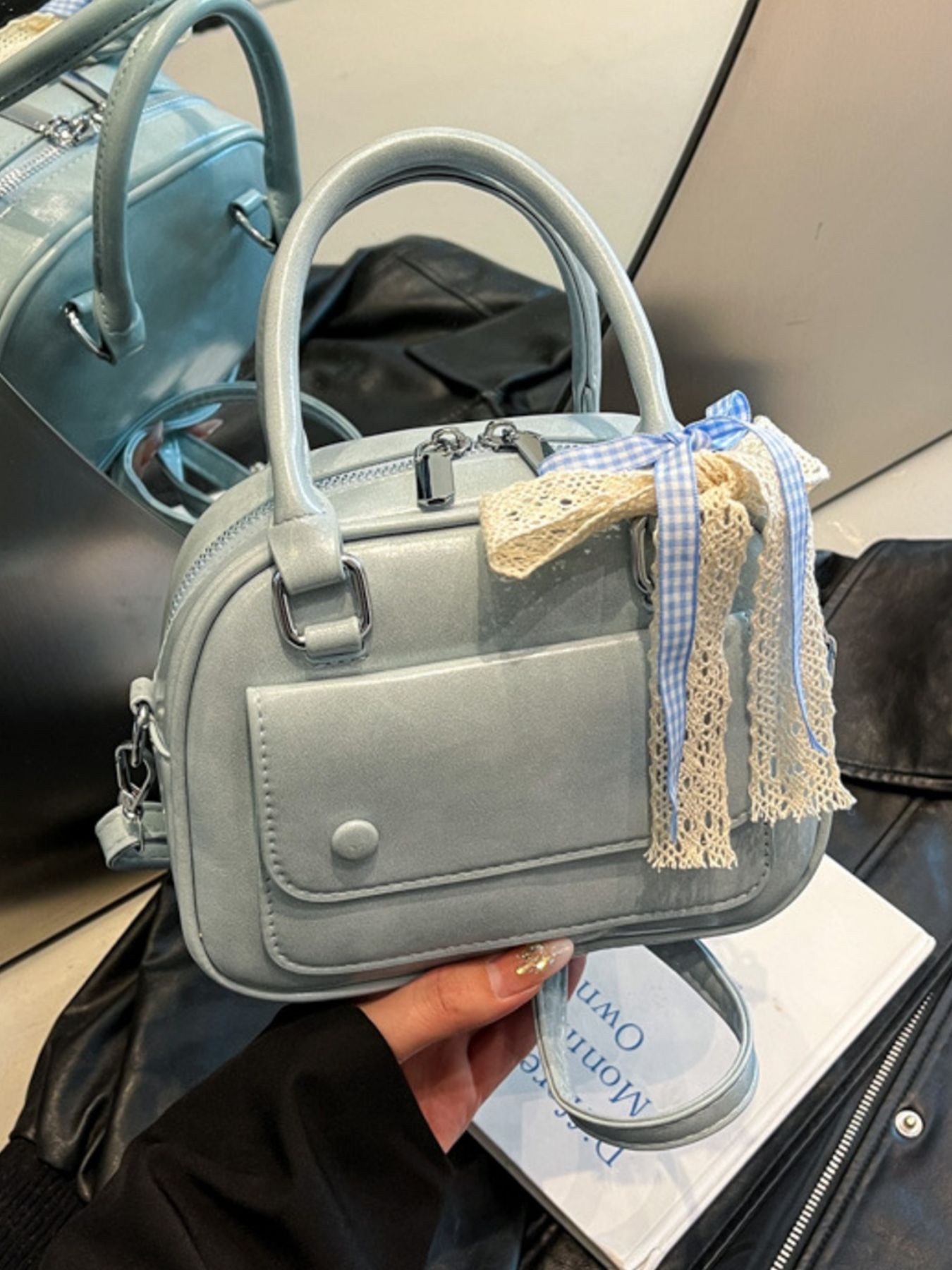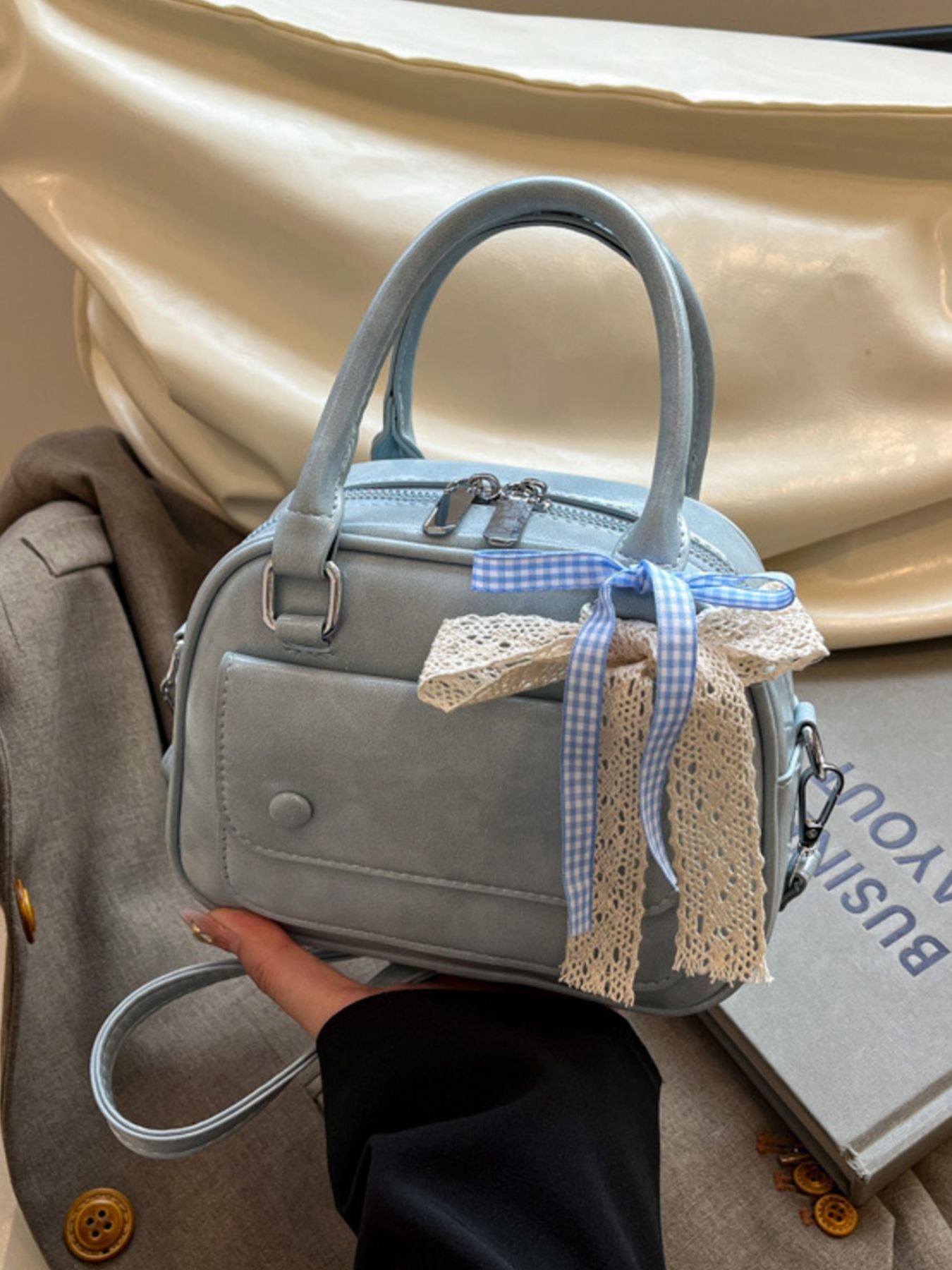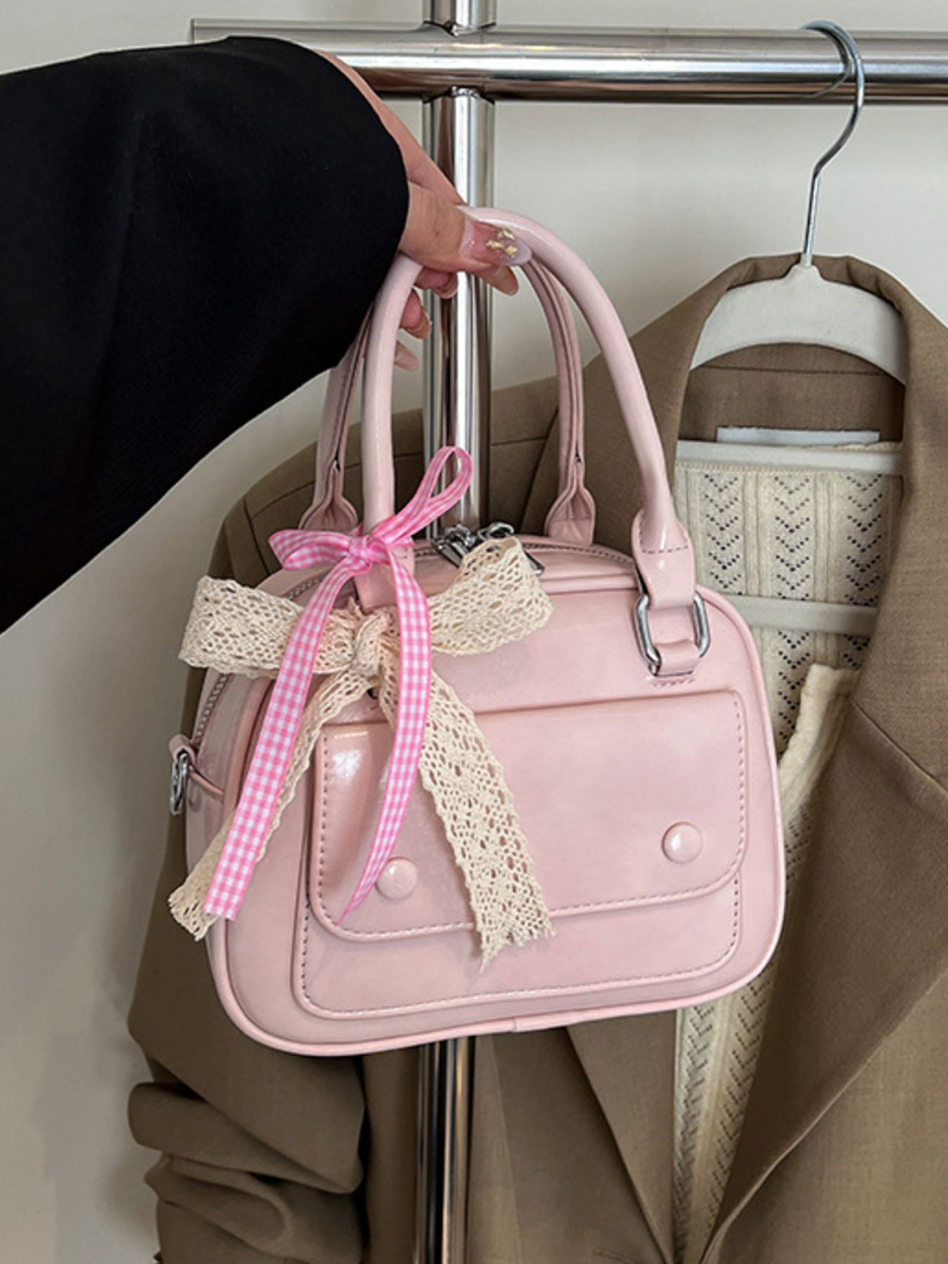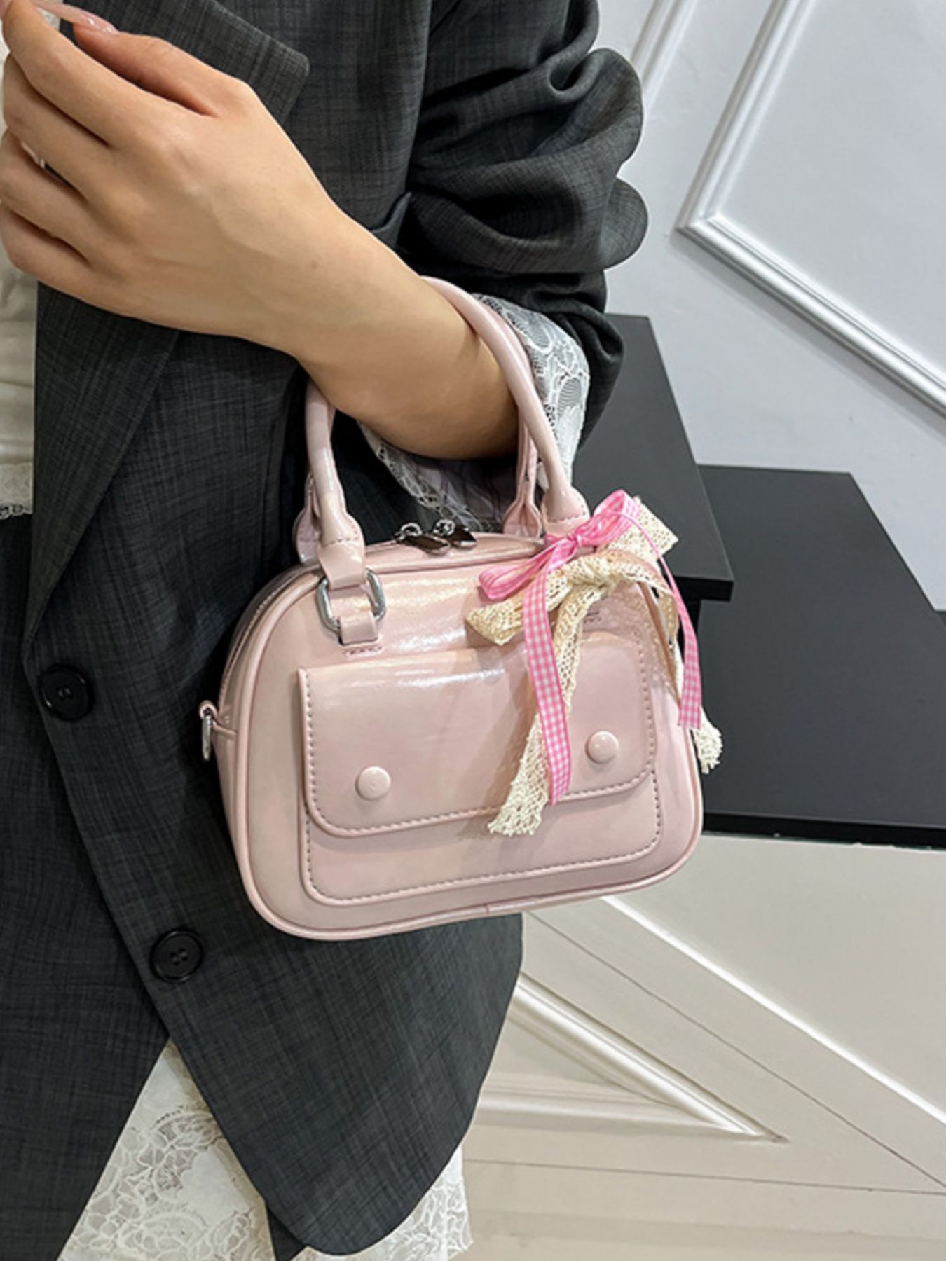 Bow Decor Top Handle Handbag