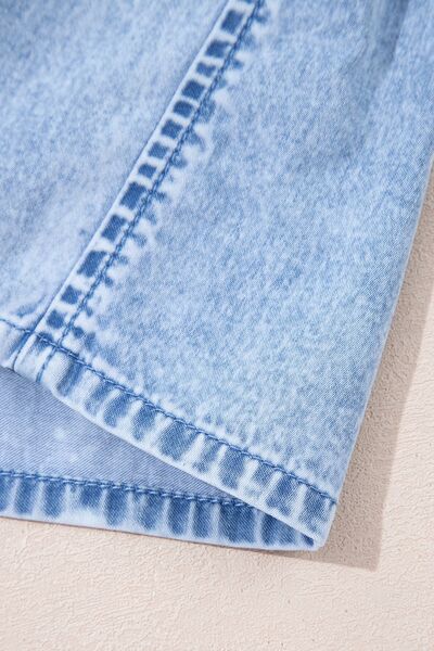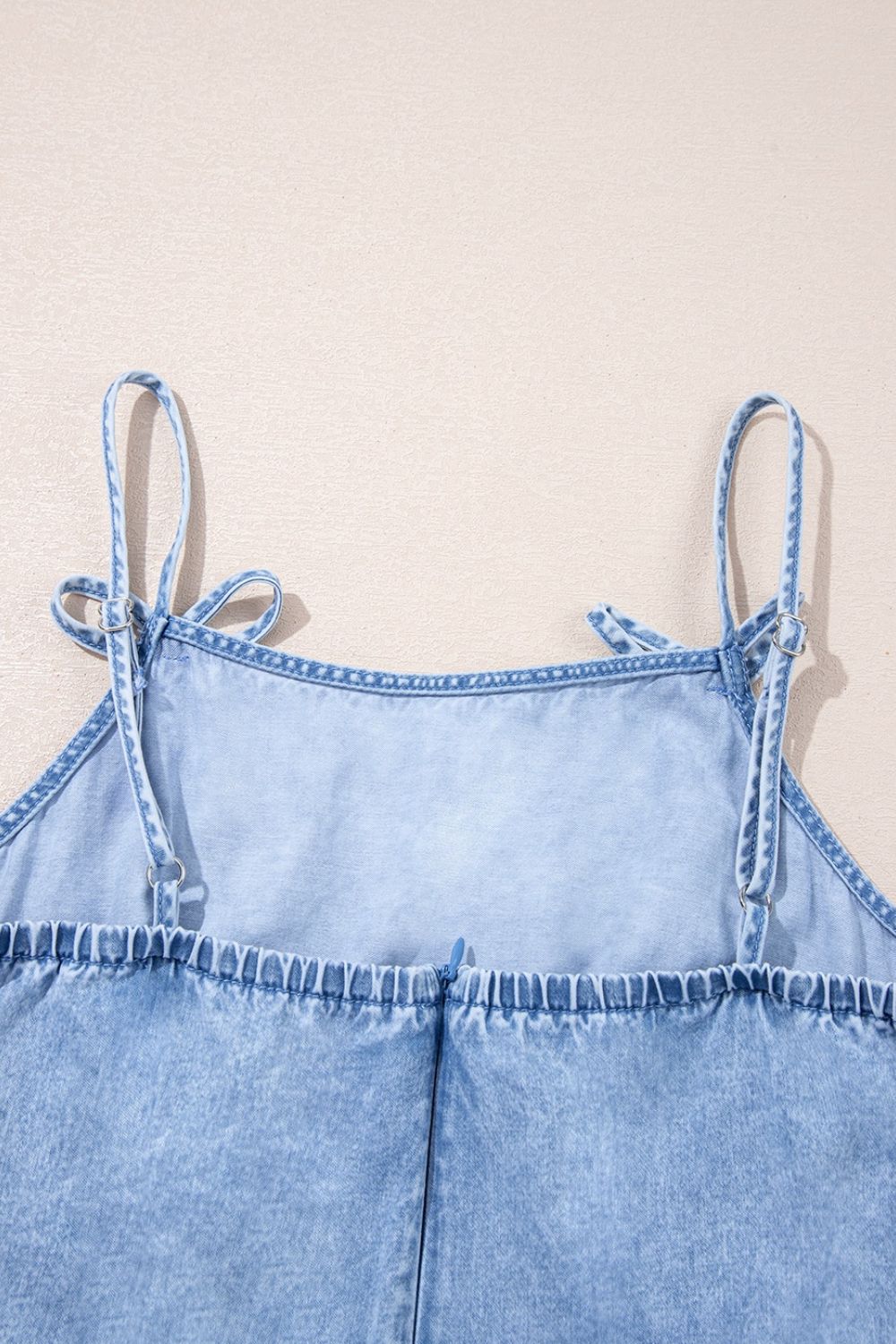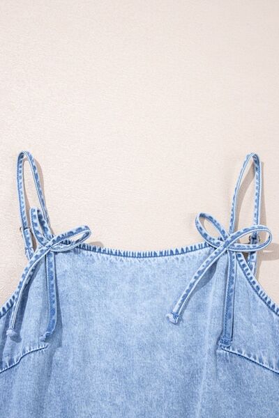 Bow Detail Spaghetti Straps Ruffle Hem Denim Dress