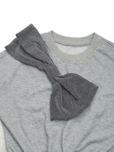 Bow Dropped Shoulder Long Sleeve Mini Dress