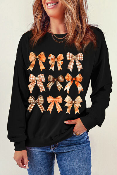 Bow Graphic Round Neck Long Sleeve Sweatshirt