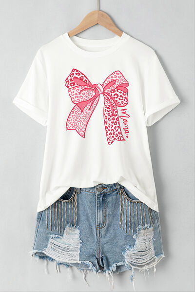 Bow Graphic Round Neck Short Sleeve T-Shirt