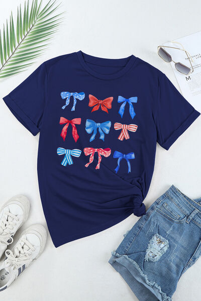 Bow Graphic Round Neck Short Sleeve T-Shirt