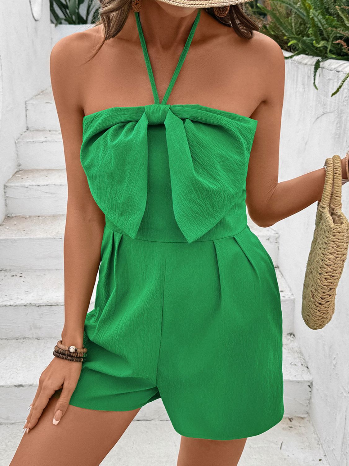 Bow Halter Neck Smocked Romper