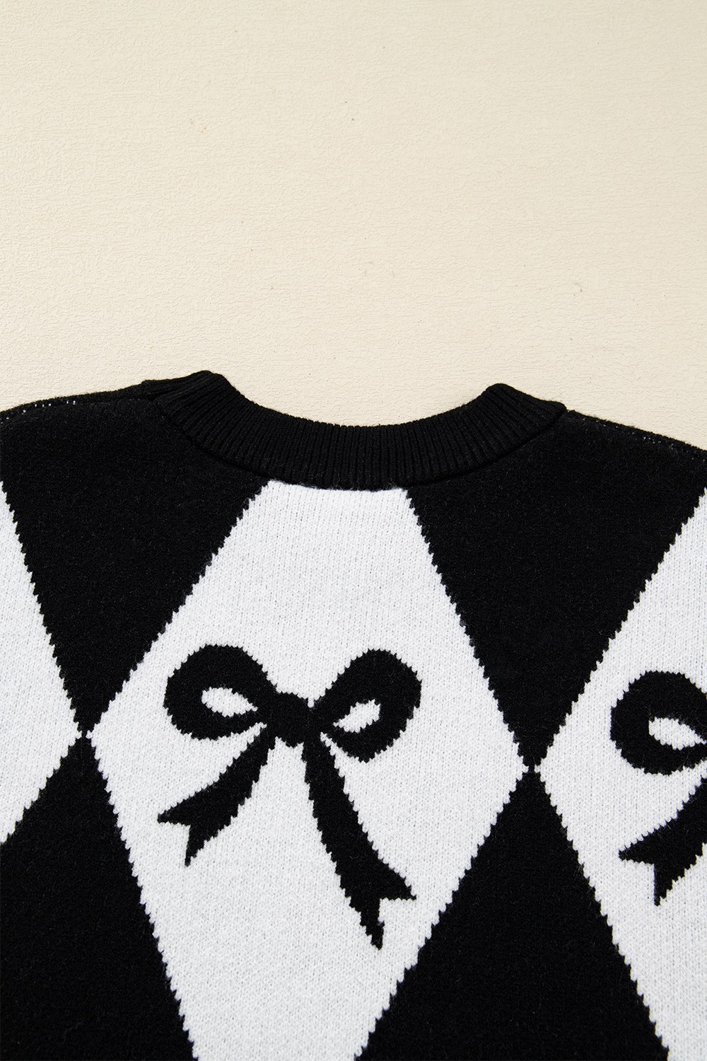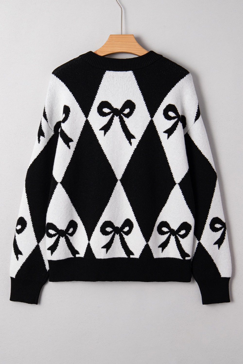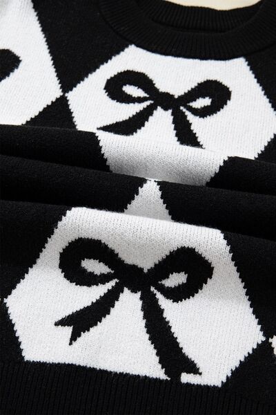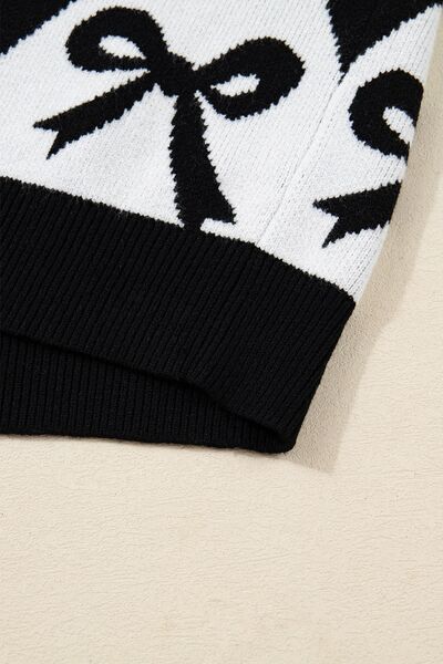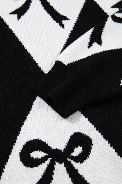 Bow Pattern Long Sleeve Contrast Sweater