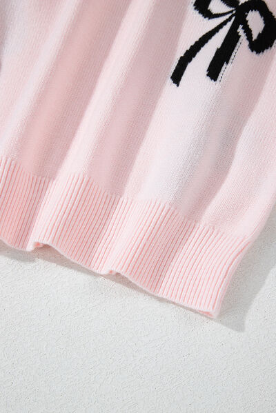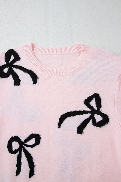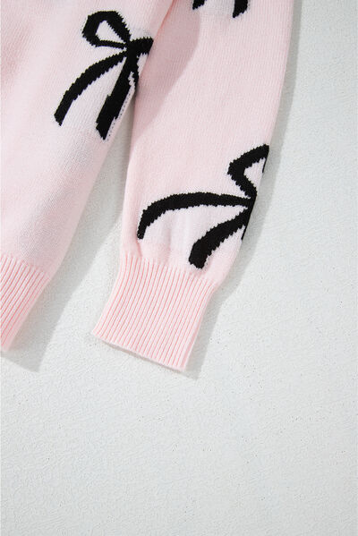 Bow Pattern Round Neck Loose Fit Sweater