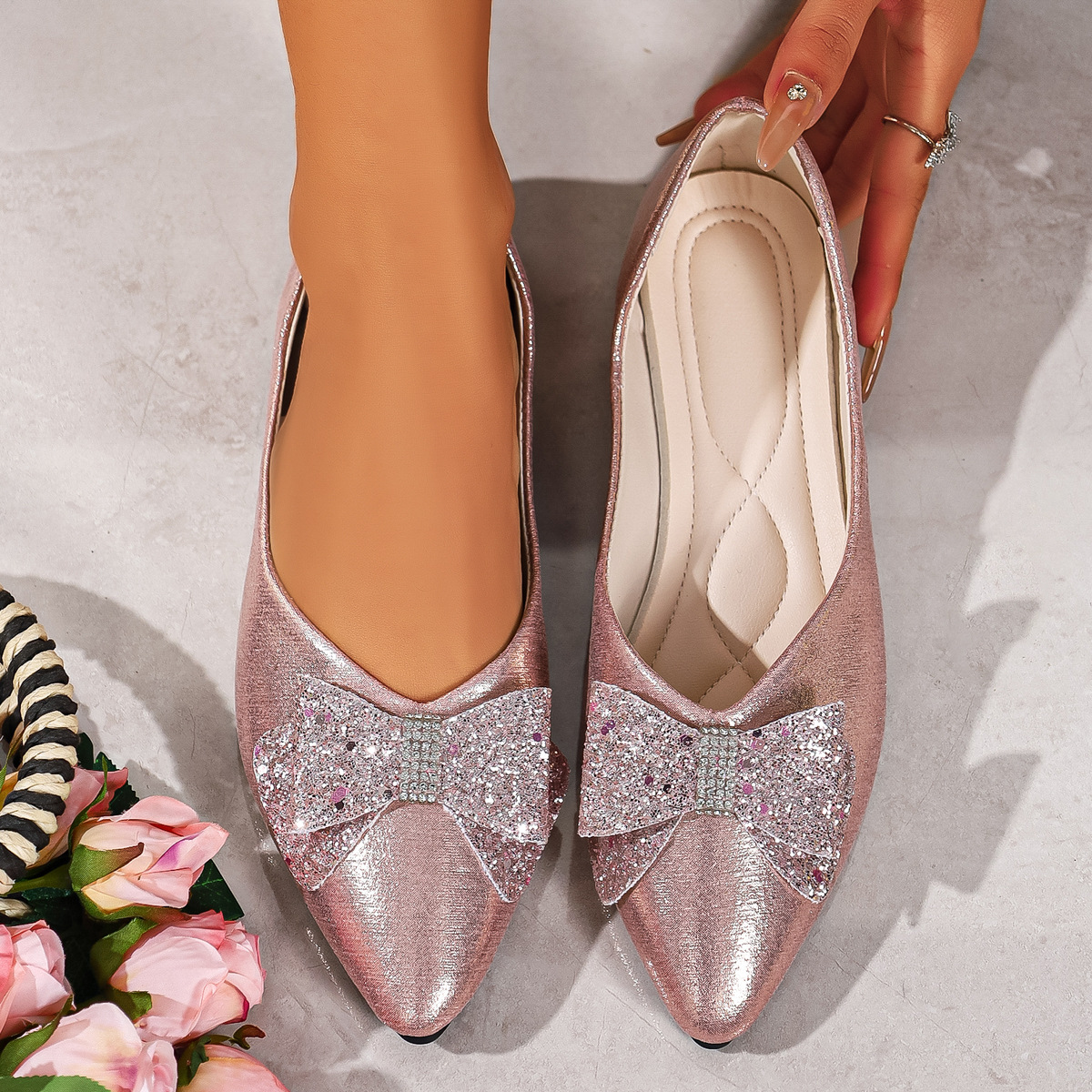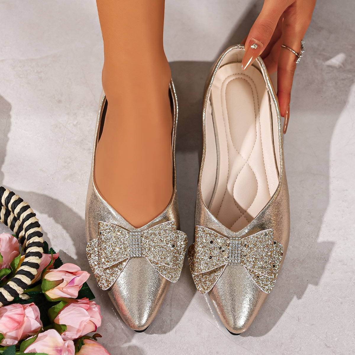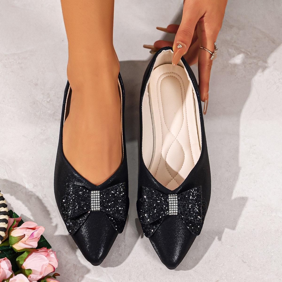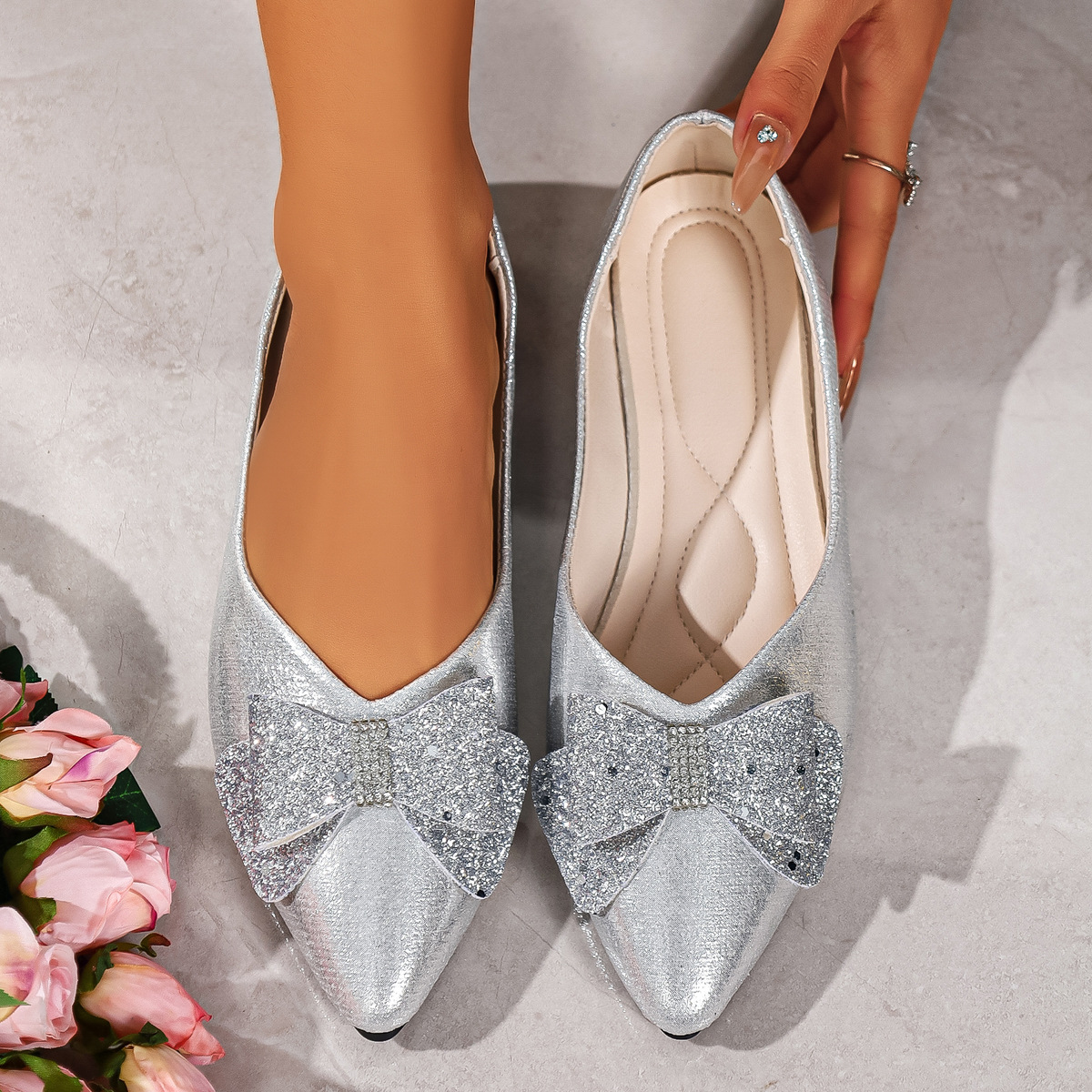Bow Point Toe Slip-Ons