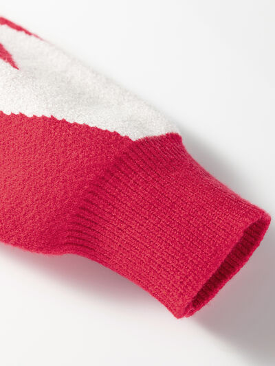 Bow Print 2-Tone Rhombus Knit Loose Sweater