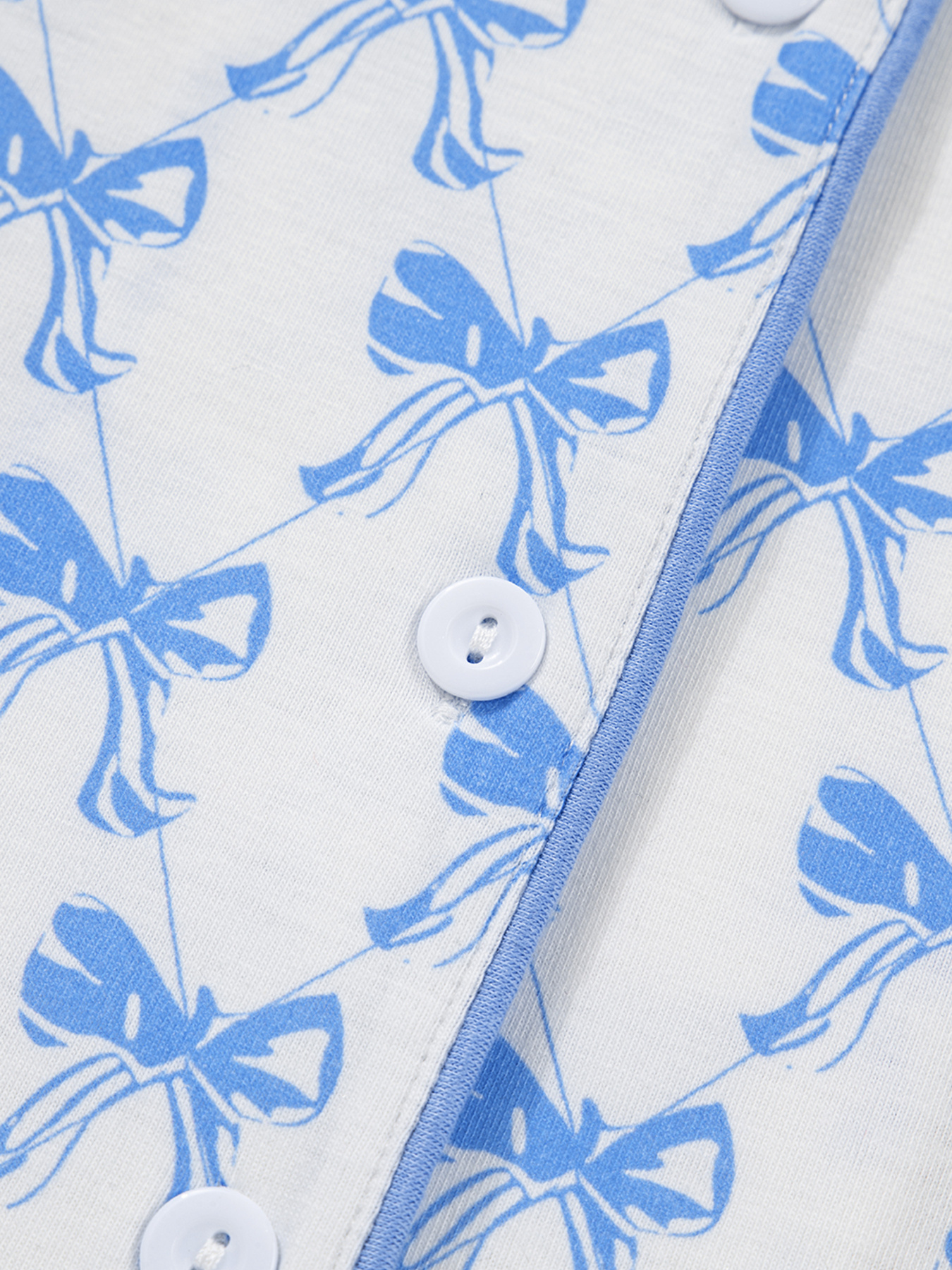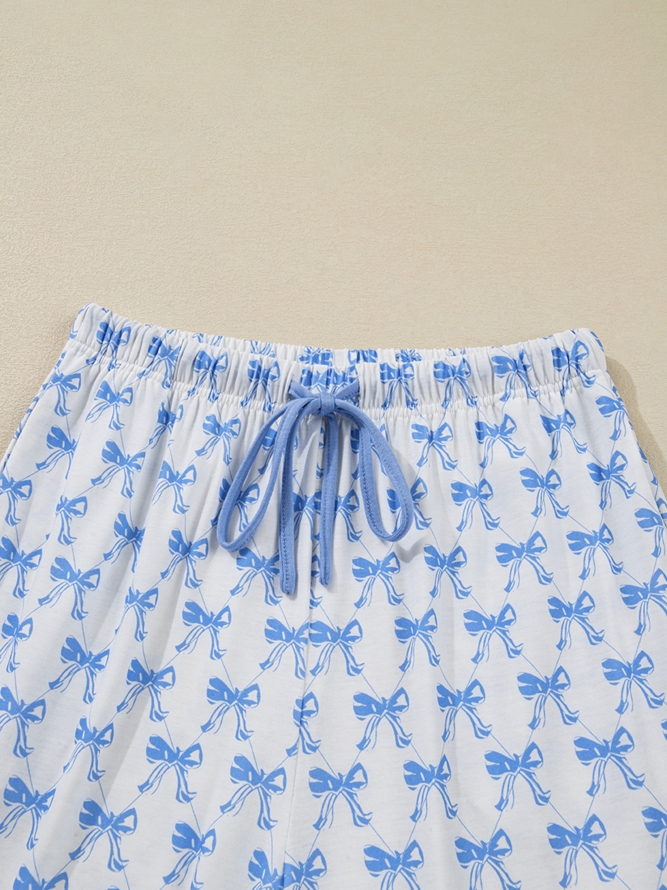 Bow Print Long Sleeve Shirt and Pants Pajama Set