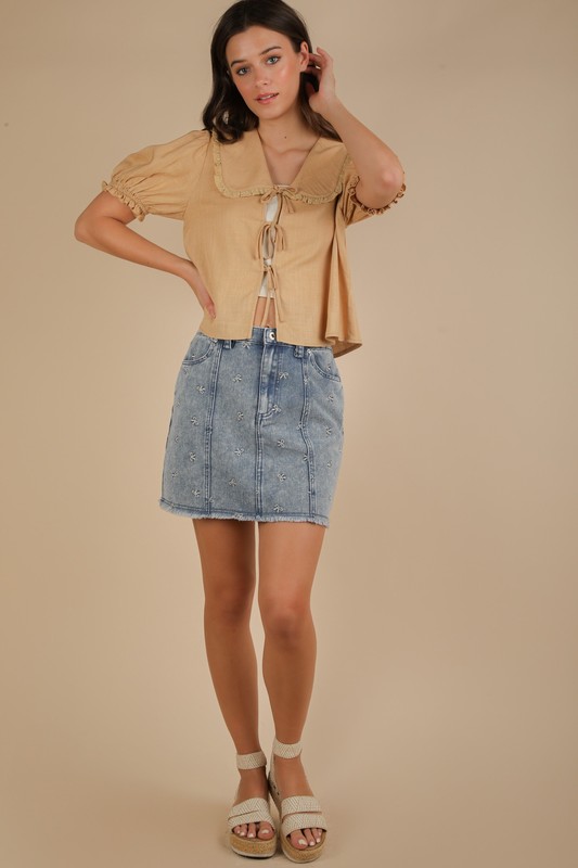 Bow Printed Casual Denim Mini Skirt