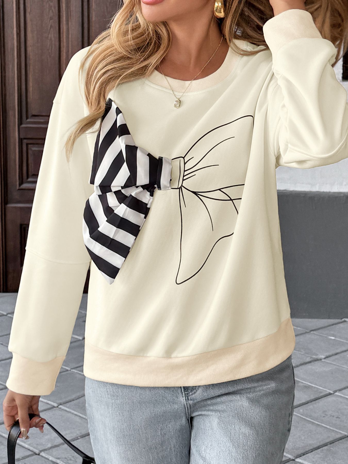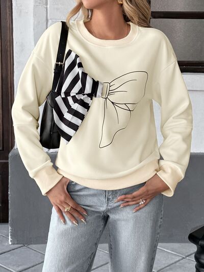 Bow Round Neck Dropped Shoulder Sweatshirt