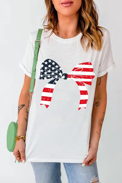 Bow Round Neck Short Sleeve T-Shirt