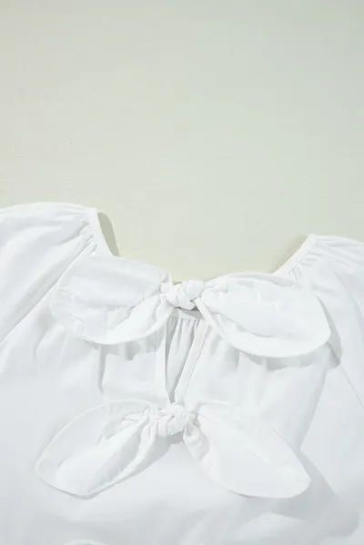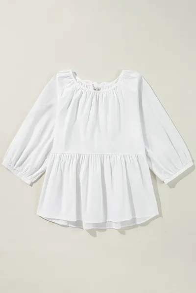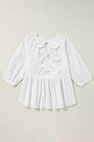 Bow Round Neck Three-Quarter Sleeve Blouse