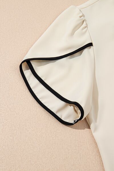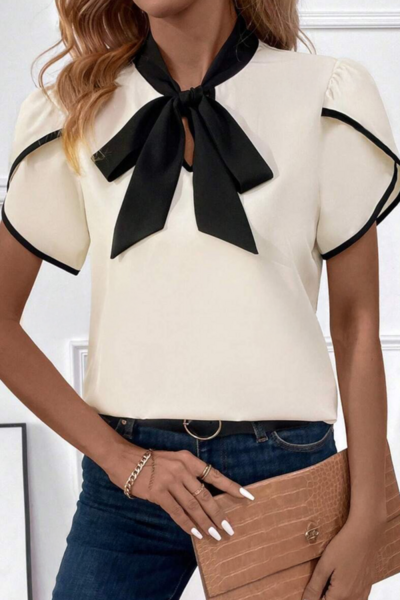 Bow Tie Contrast Short Sleeve Blouse
