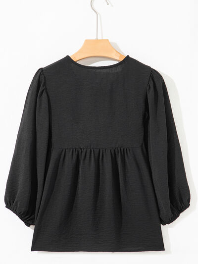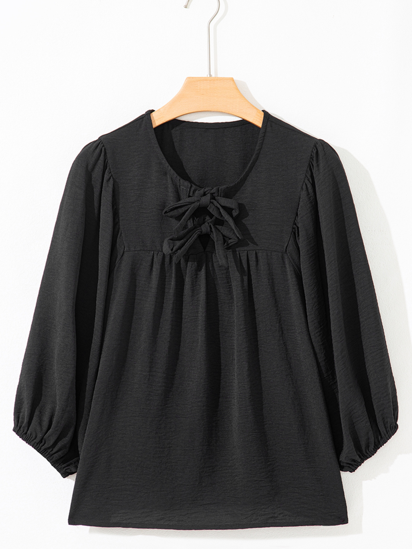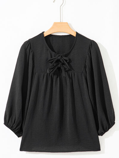 Bow Tie Neck 3/4 Sleeve Casual Blouse
