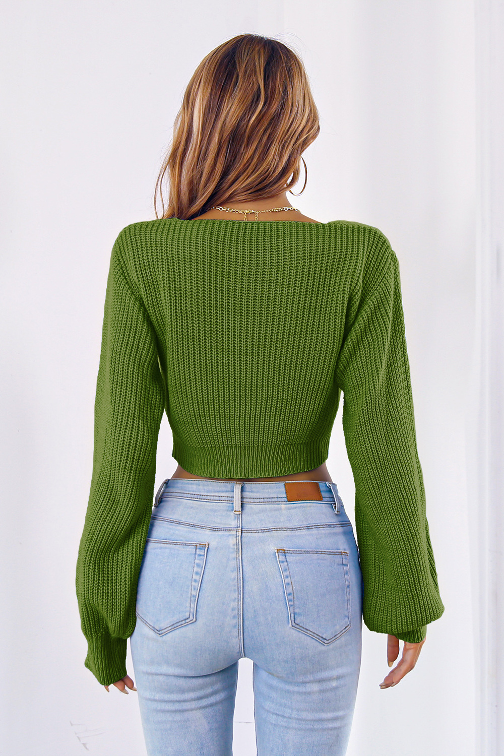 Bow V-Neck Long Sleeve Cropped Sweater