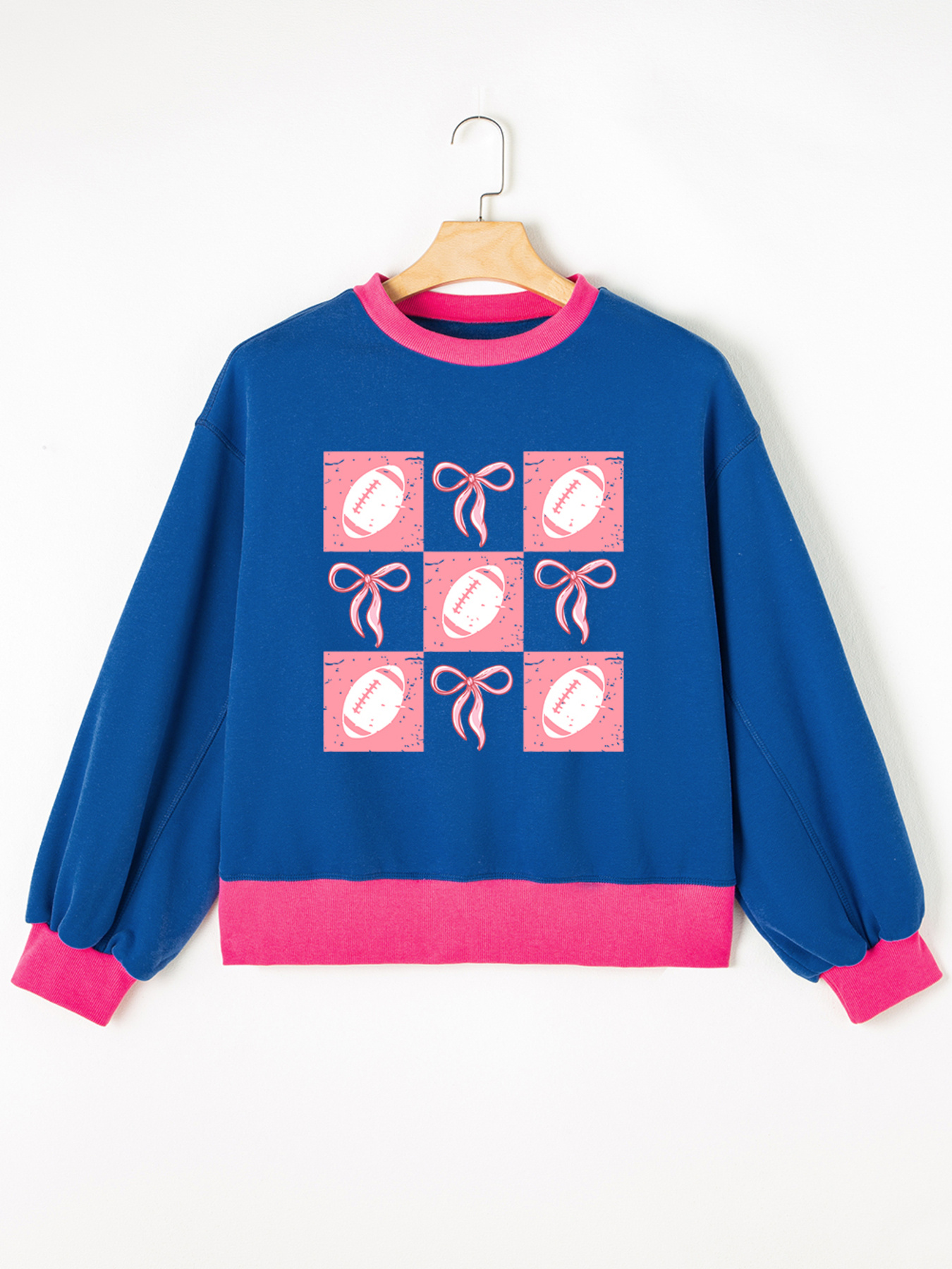Bowknot Graphic Game Day Contrast Trim Drop Shoulder Casual Sweatshirt