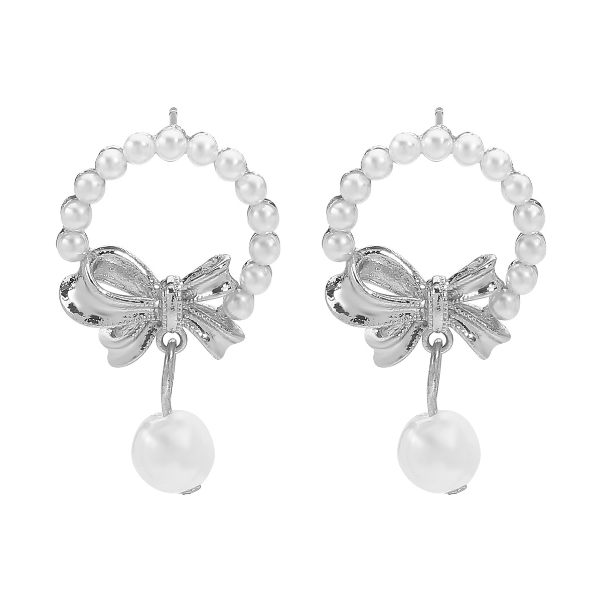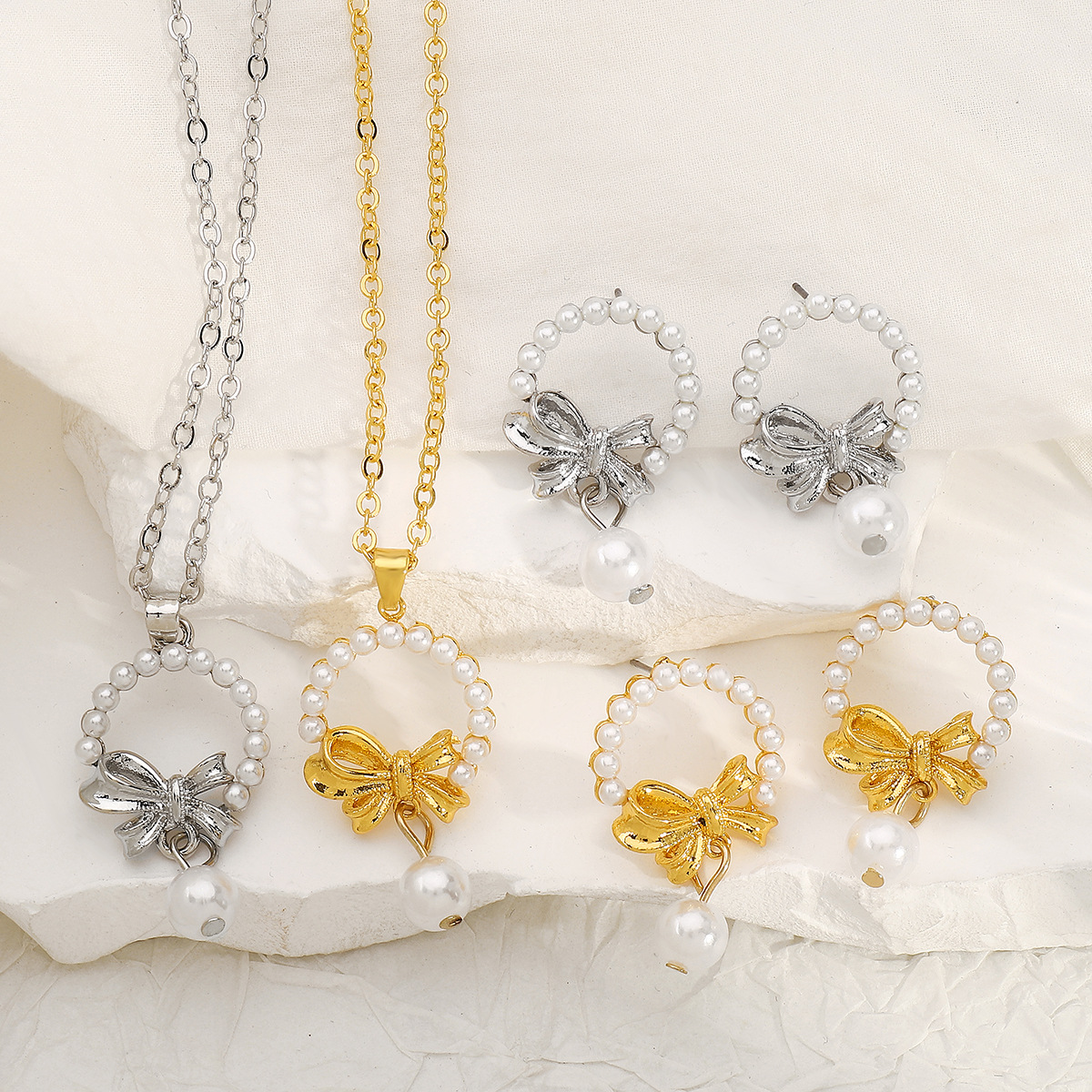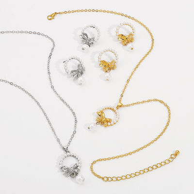 Bowknot Pearl Earrings and Pendant Necklace Jewelry Set