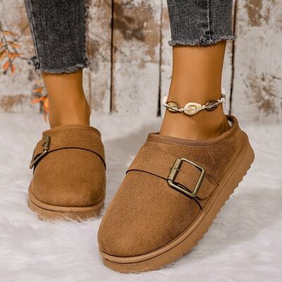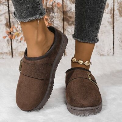 Buckle Decor Plush Lined Warm Slippers