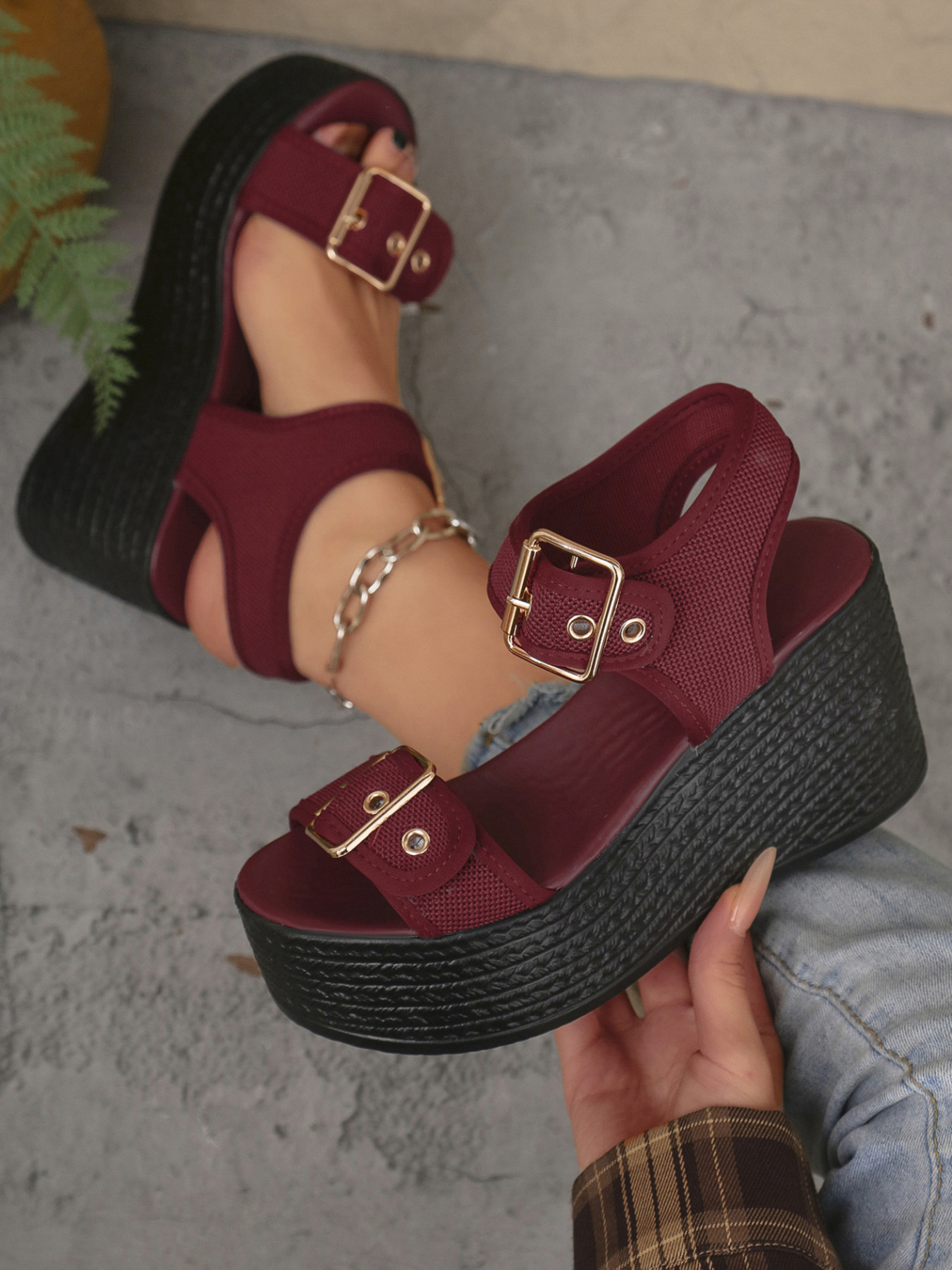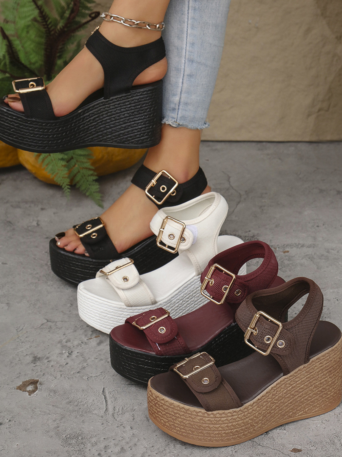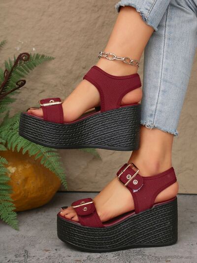 Buckled Platform Espadrille Wedge Sandals