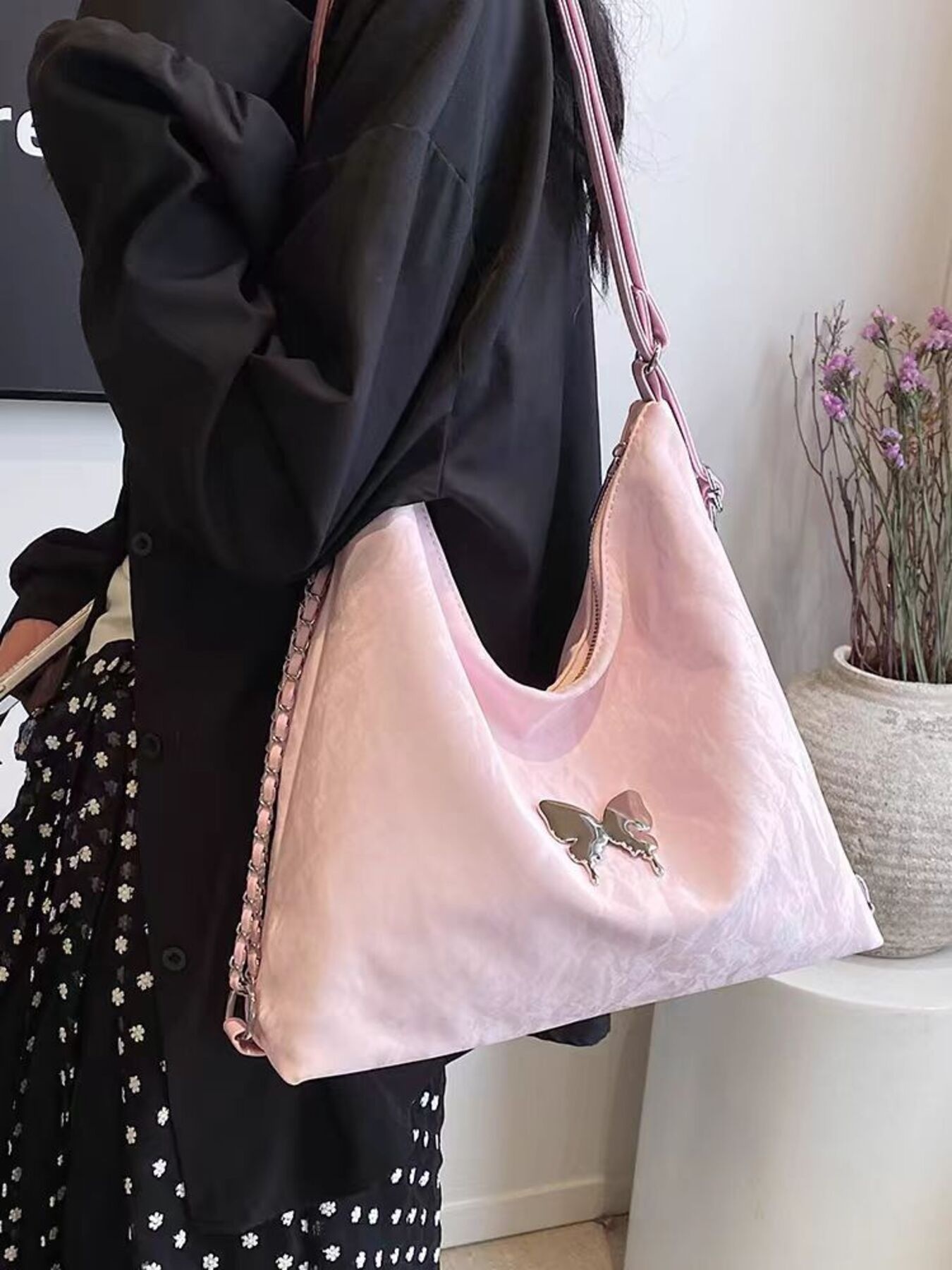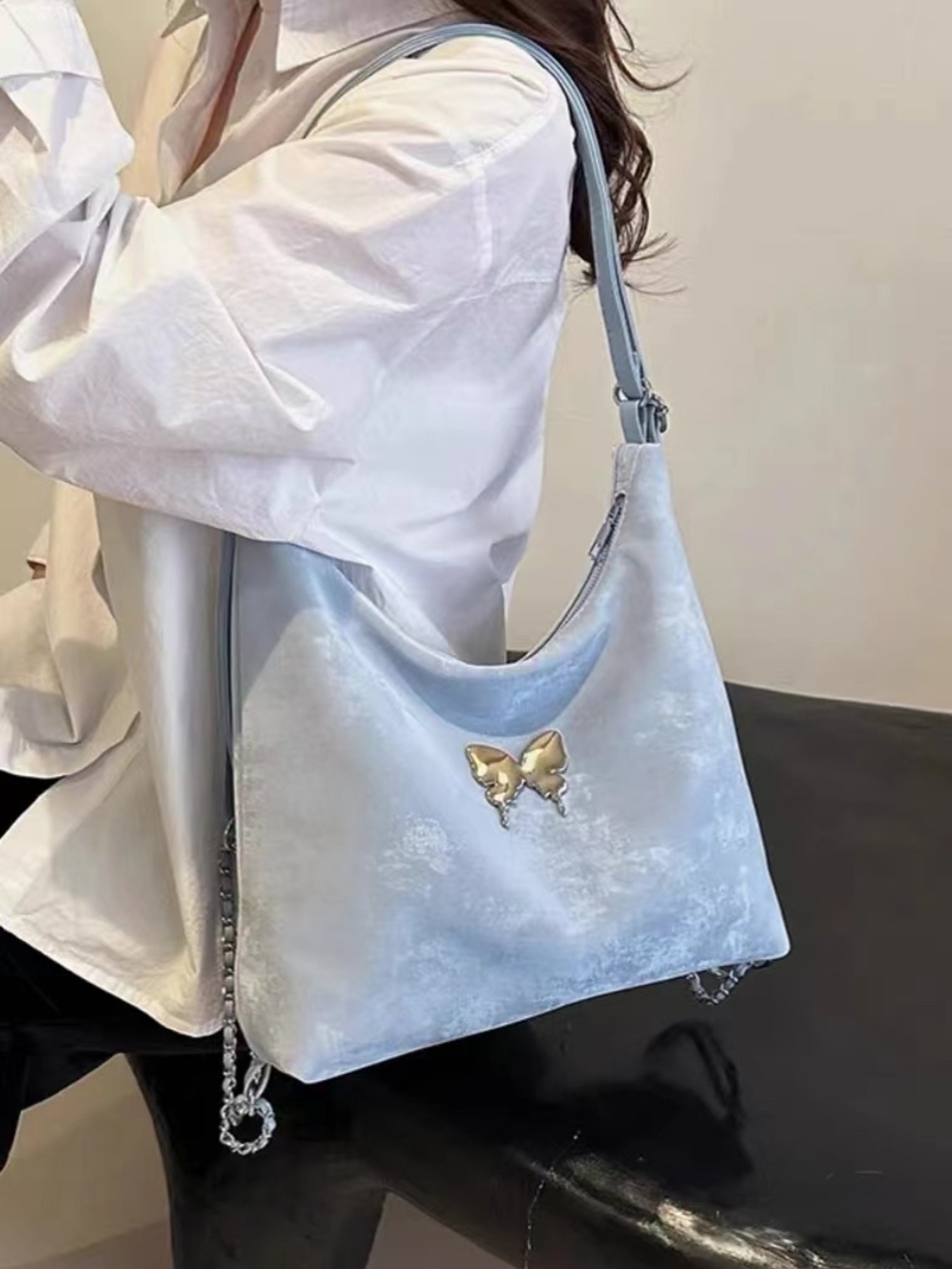 Butterfly Decor Convertible Shoulder Bag