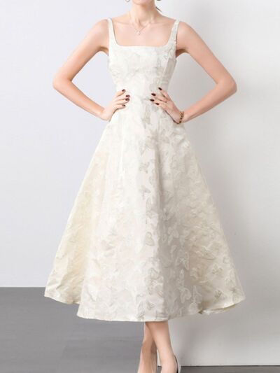 Butterfly Pattern A-Line Sleeveless Midi Dress