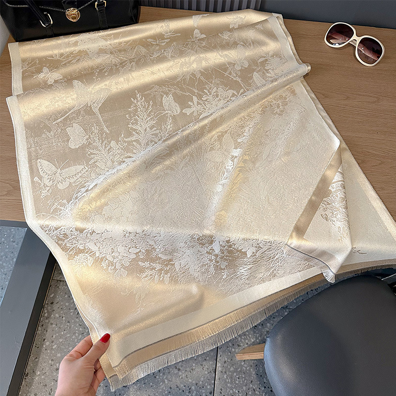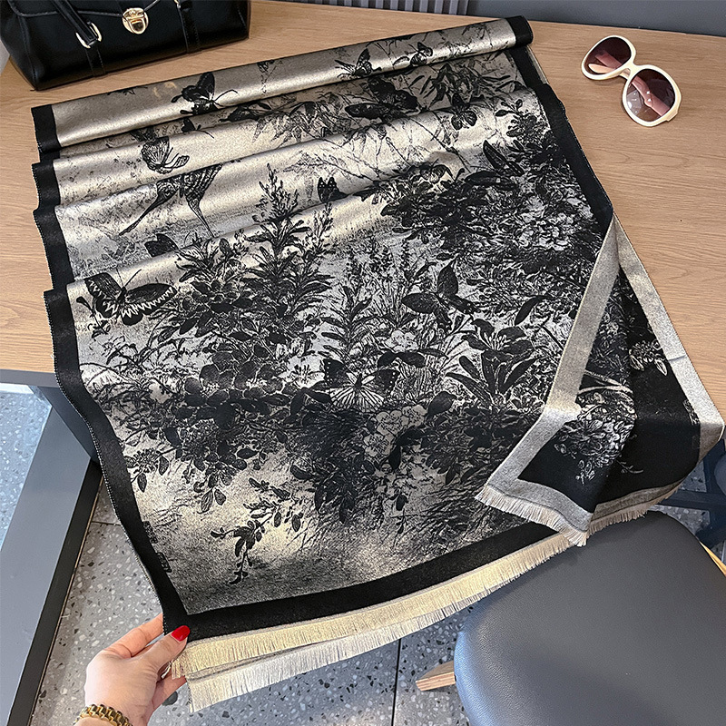 Butterfly Print Raw Hem Scarf