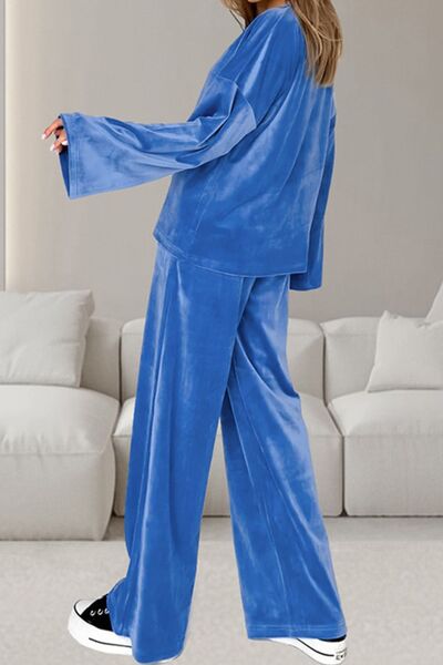 Buttery-Soft Round Neck Long Sleeve Top and Drawstring Pants Set