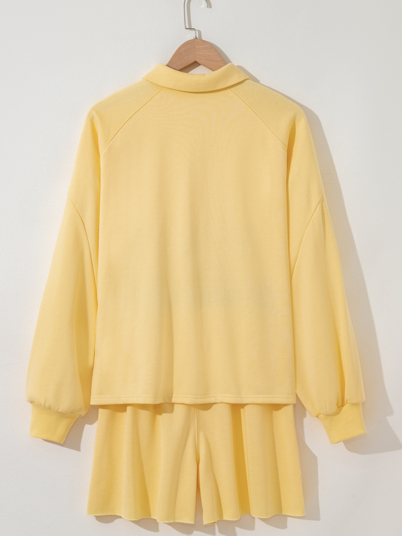 Button Collar Drop Shoulder Top and Shorts 2pcs Set
