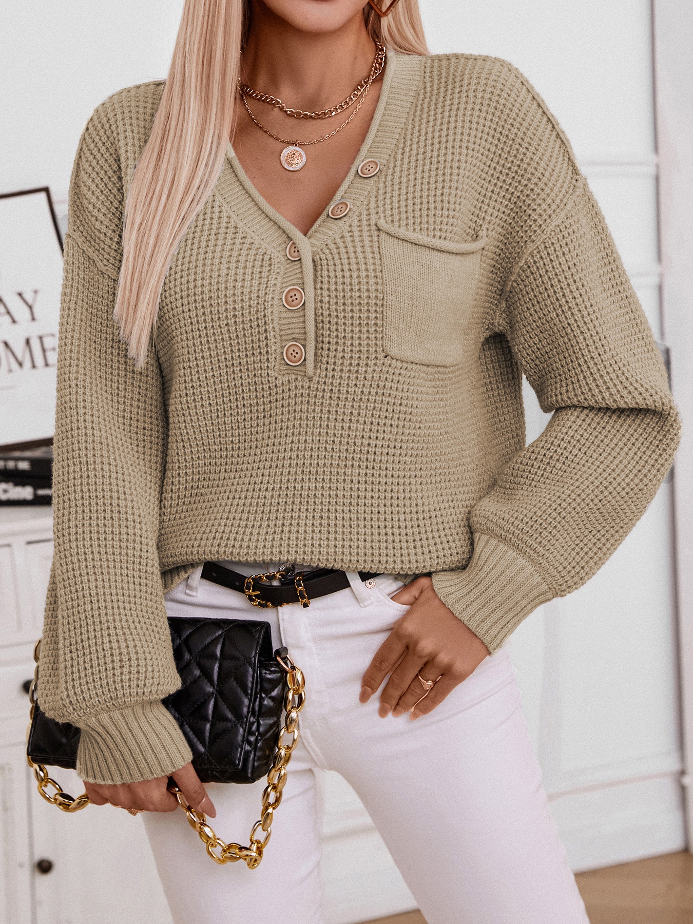 Button Detail Long Sleeve Sweater