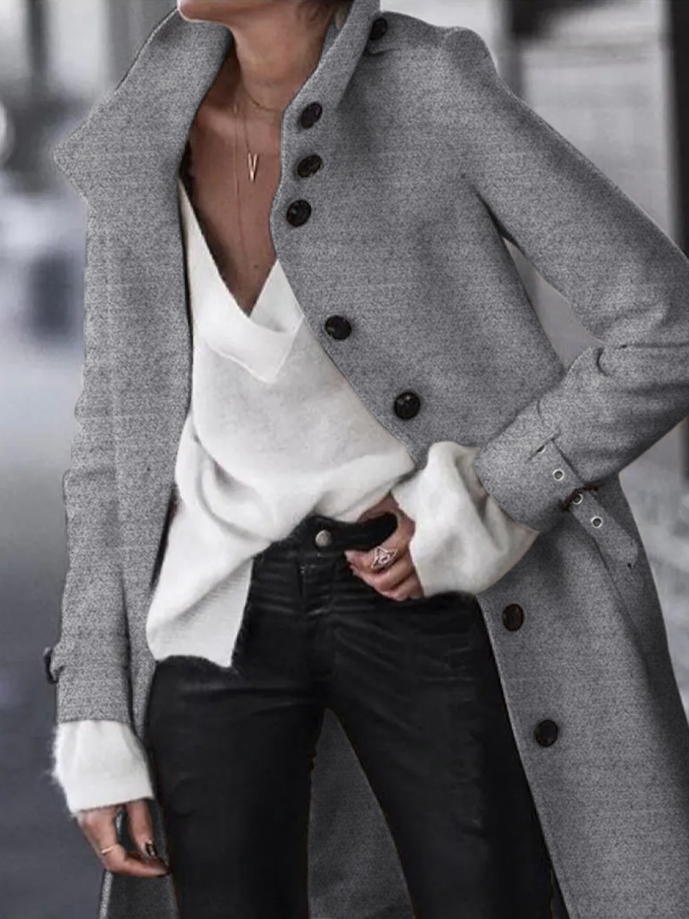 Button-Down Longline Coat with Belt